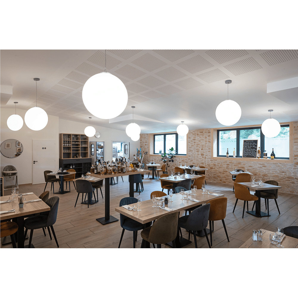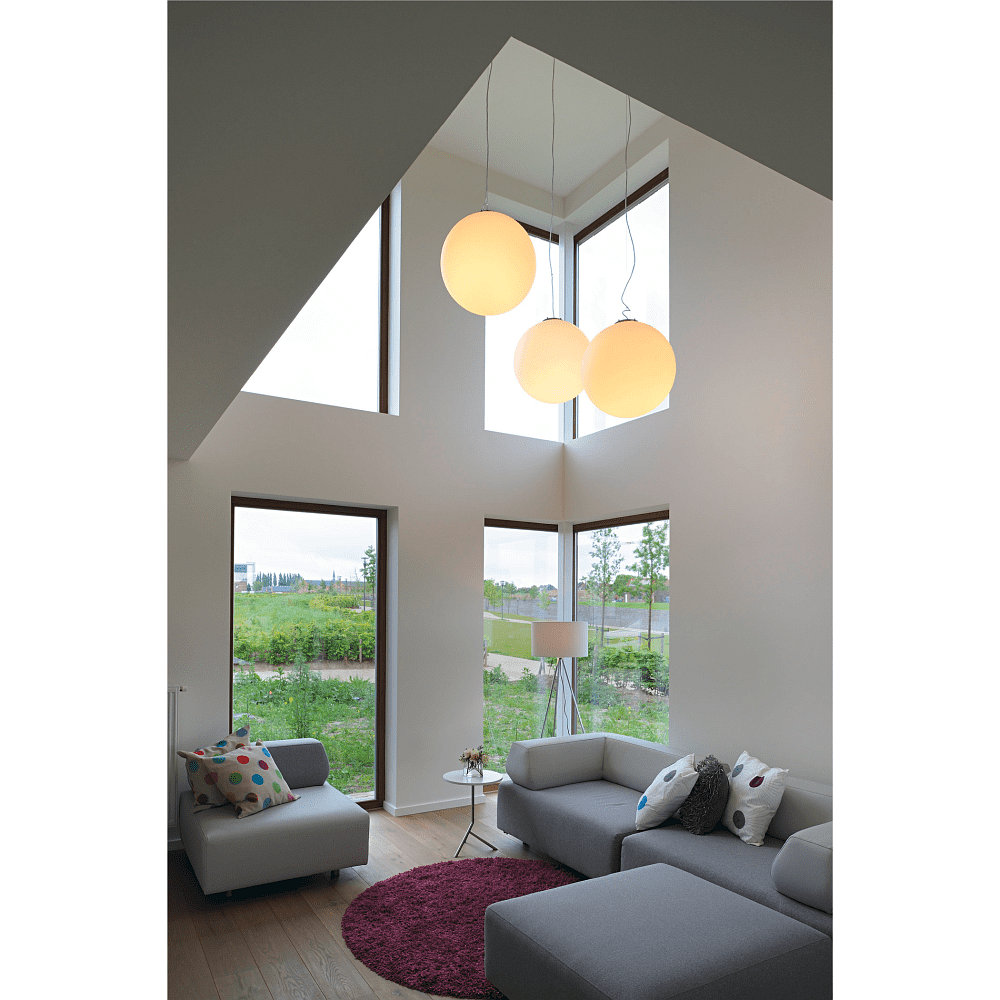 Thanks to the ball diffuser, the pendant light provides a pleasant light distribution in the room. It is compatible with dimmable light sources and can be replaced with LED light sources. Discover the matching indoor and outdoor lights from the ROTOBALL series for a cohesive lighting in your home.