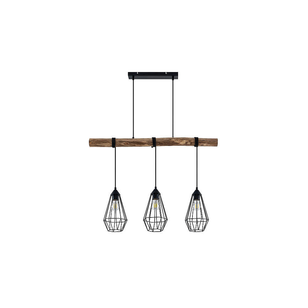 The RUTILUS pendant light from Brumberg stands out with its unique design featuring three E27 sockets and wood/steel cage shades in matte black. With dimensions of 90 x 17.5 x 214 cm and a shade diameter of 17.5 cm, it is perfect for indoor ceiling use.