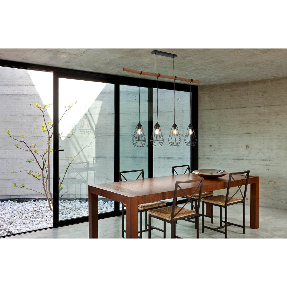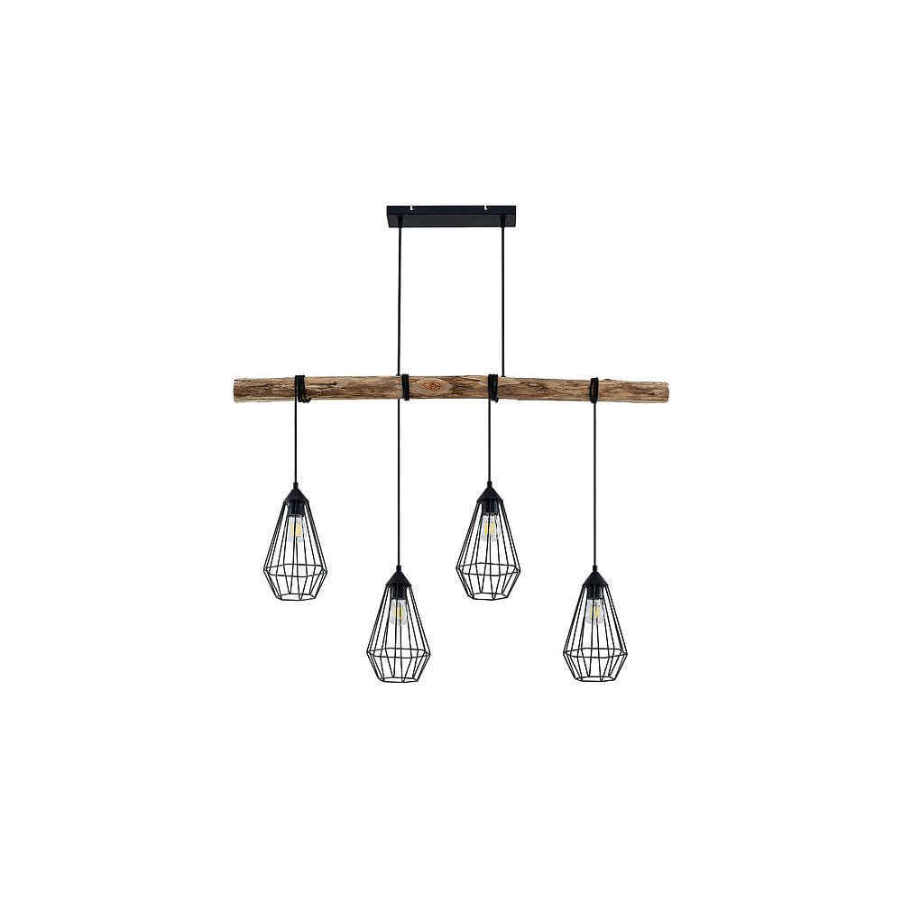 Pendant light RUTILUS, 4-flame, 4x E27, wood / steel cage shades, matte black