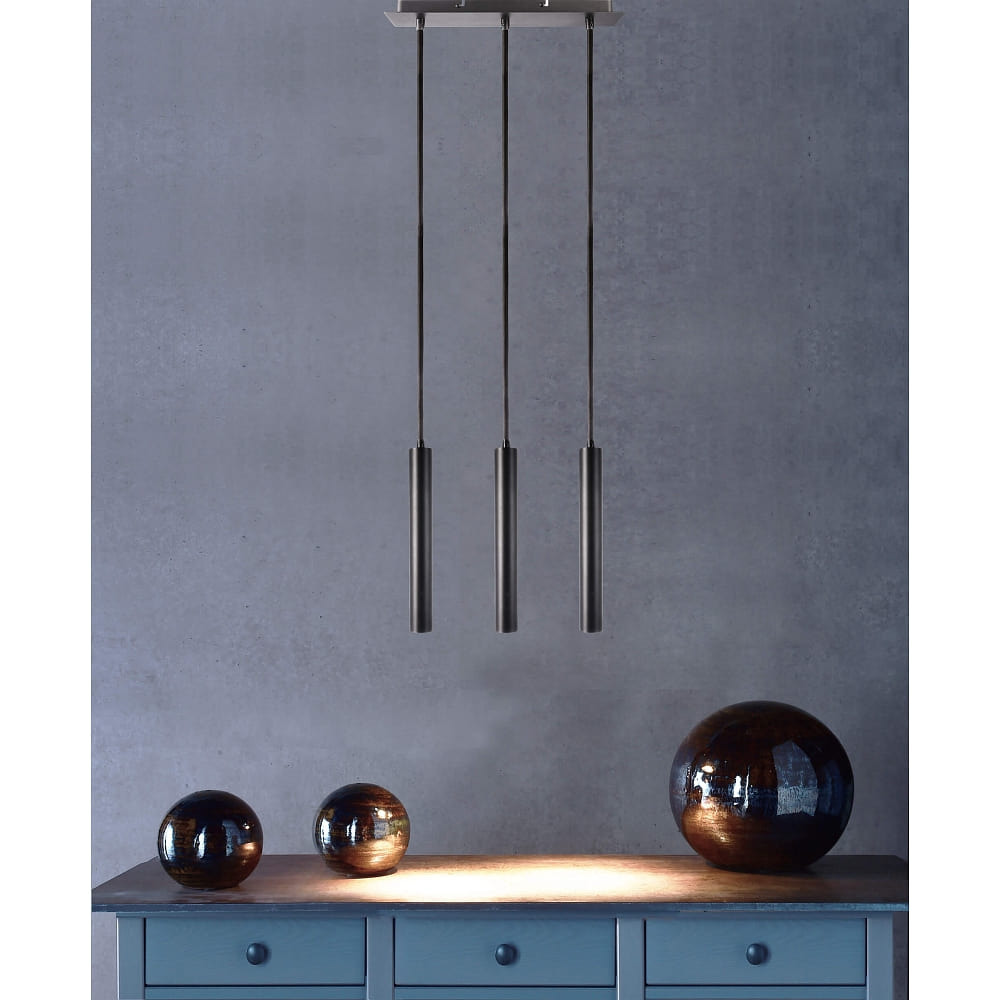 pendant luminaire SLIM 3 flames, long, UGR < 19, switchable IP20, deep black