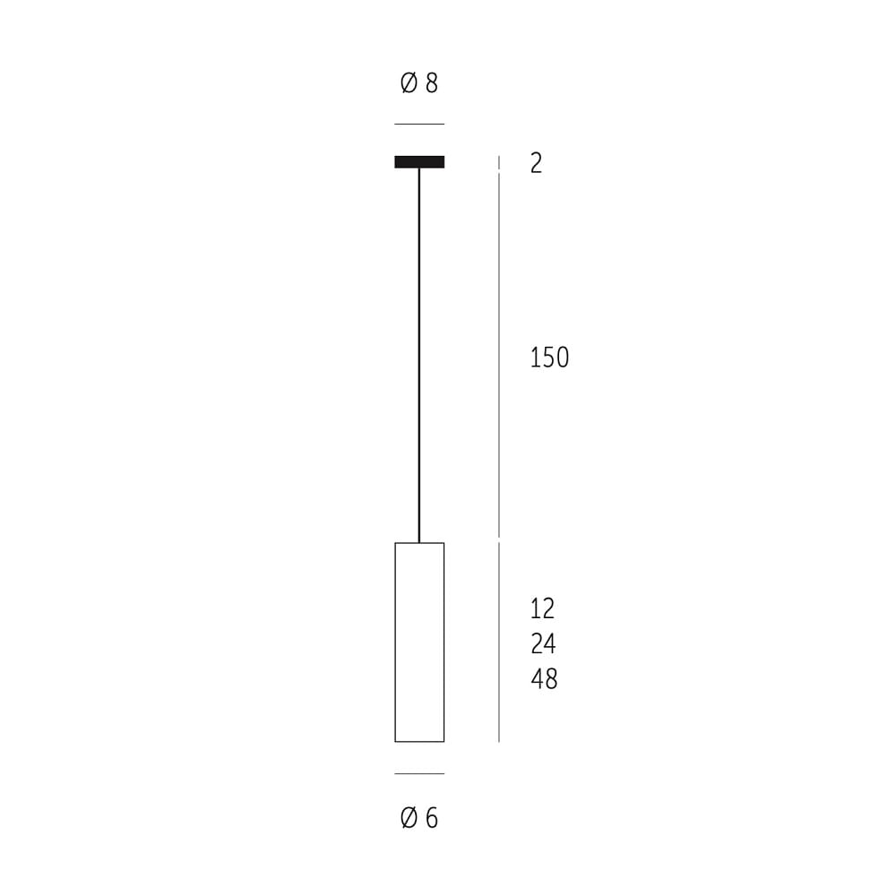 The pendant length of the TUBUS light is adjustable, allowing it to be optimally adjusted to the room height. The light comes with a suspension for room heights of 2.50 to 2.85 meters, making it ideal for various living spaces.
