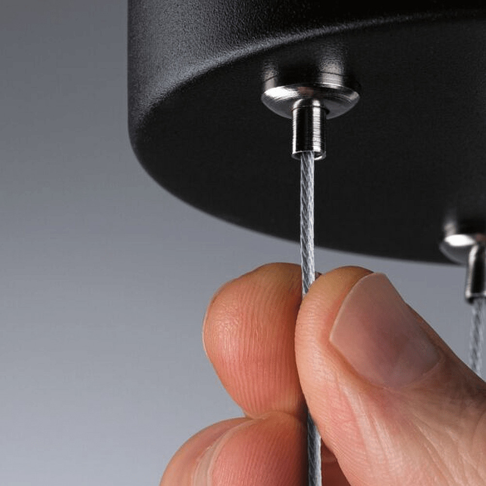 The pendant suspension for the VOLEA LED ceiling light from Paulmann offers a flexible and modern solution to customize your lighting individually. With a maximum pendant length of 150 cm, which can easily be shortened to up to 70 cm, the suspension can be optimally adapted to your room conditions. Three adjustable wire cables ensure a secure and stable mounting that you can adjust as desired. The transparent connection cable emphasizes the discreet design and ensures unobtrusive wiring.