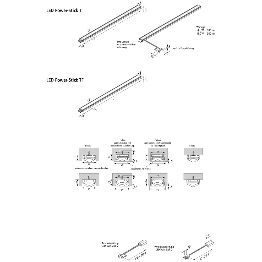 Pluggable LED rod LED Power-Stick T SE, without dark zones, lateral feed 250cm, 30cm, 18 LED, 6W 5000K 85°