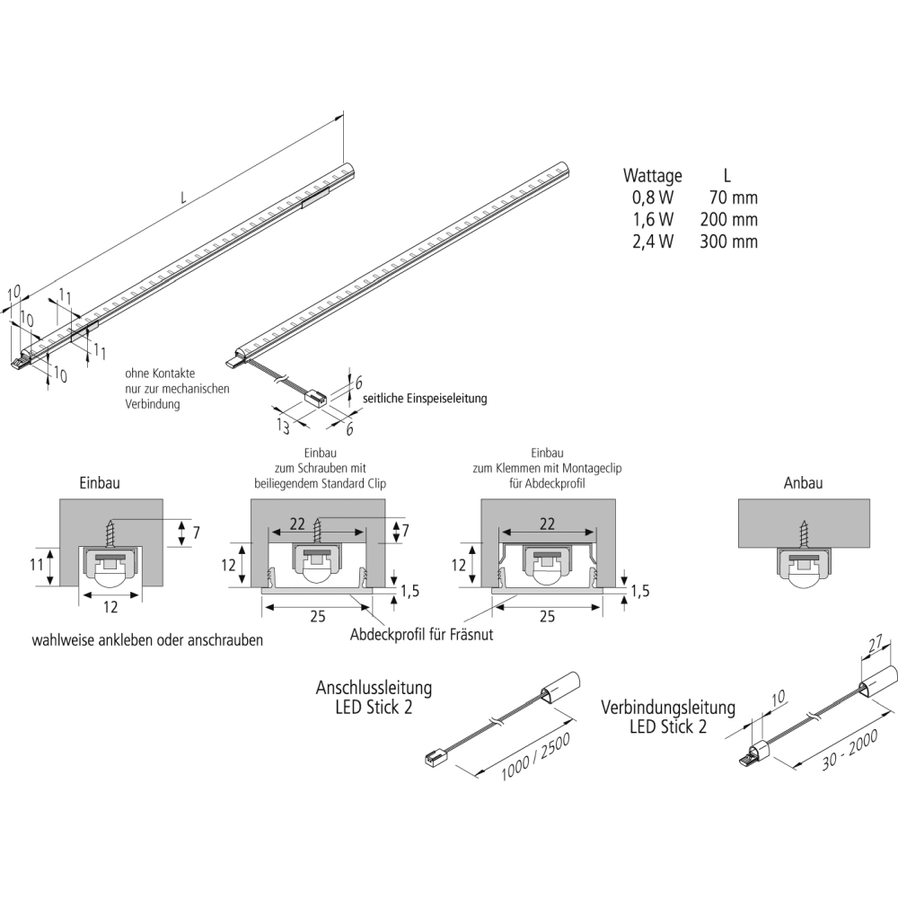 The installation of the LED bar can be done as both recessed and surface-mounted. The connection is made via the LED-24 plug-in system, which allows for easy installation. The connector type is also LED-24 plug-in system.
