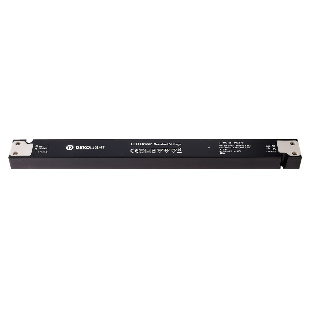The LT-100-48 power supply from Deko-Light is a voltage constant device with a power consumption of 100W. It is ideal for use in furniture and has an operating voltage range of 220-240 V/AC. With a protection class of 2 and an IP20 protection rating, it is safe and reliable.