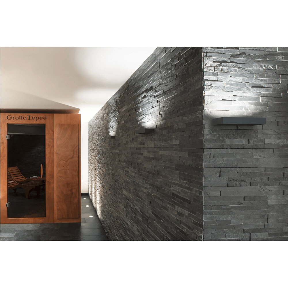 The PEMA® WL wall light is made of aluminum and glass, giving it not only a modern and elegant anthracite design but also high stability. Weighing 0.724 kg and with compact dimensions of 22 x 3.2 x 7.5 cm, it is discreet yet sturdy. The IP54 protection class guarantees protection against dust and splashing water, while the IK05 impact resistance provides protection against minor shocks and vandalism. This ensures the luminaire remains reliably functional even under adverse conditions.