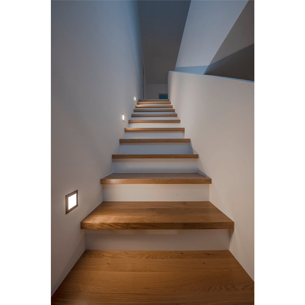Thanks to the use of aluminum as material, the Premium LED Recessed Wall Light FRAME BASIC HV is not only sturdy but also lightweight. With an average lamp lifespan of 30000 hours, you can enjoy this light for a long time. Additionally, it only consumes 3.1W, making it energy-efficient and environmentally friendly.