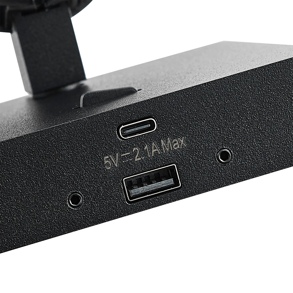 A special highlight of this reading lamp is the integrated USB charging base with two ports: one USB-A and one USB-C port. These allow simultaneous charging or operation of devices such as smartphones, tablets, or other accessories. The charging capacity is a maximum of 2.1 amperes at an operating voltage of 220-240 volts, ensuring fast and safe power supply. The switch on the front panel makes it easy to turn the lamp on and off, providing additional convenience.