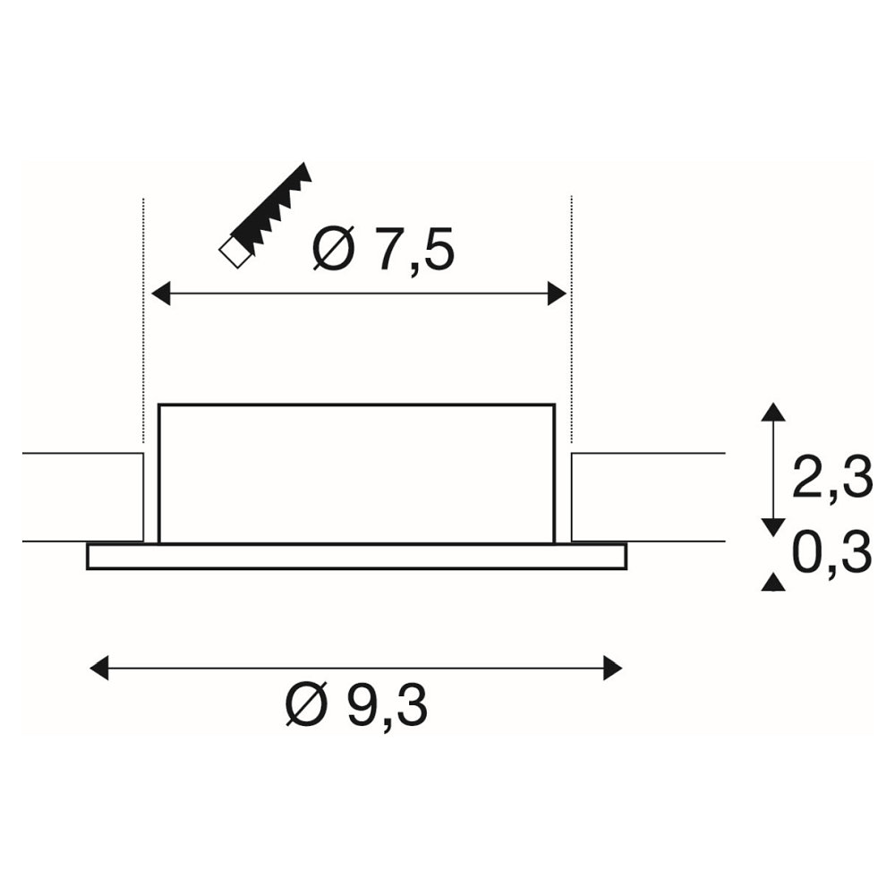The recessed light has a size of Ø/L/W/H: 9.3/9.3/9.3/2.6 cm and a mounting opening of 7.5 cm in diameter. The compact dimensions make the recessed ceiling light ideal for use in small rooms or for targeted accent lighting.