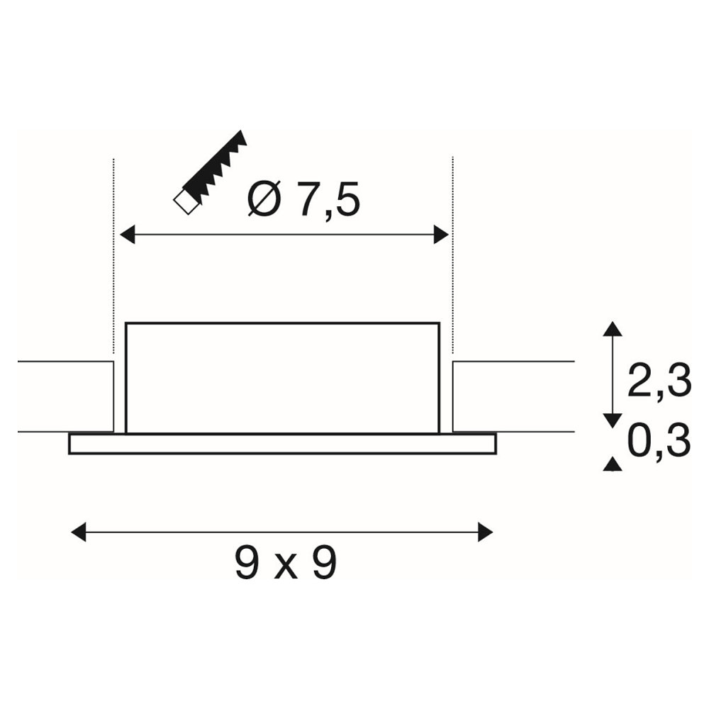 Made of high-quality aluminum, the recessed ceiling light is durable and stable. The installation opening has a diameter of 7.5 cm, providing ample space for installation. The mounting ring is from the brand SLV and is known for its quality.