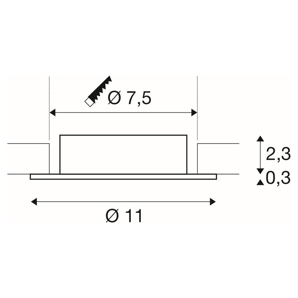 The recessed ceiling light NEW TRIA® 75 XL is a high-quality product from the brand SLV, suitable for both private and commercial use. With dimensions of 11x11x2.6 cm and weighing only 0.1 kg, this round light is ideal for ceiling installations.