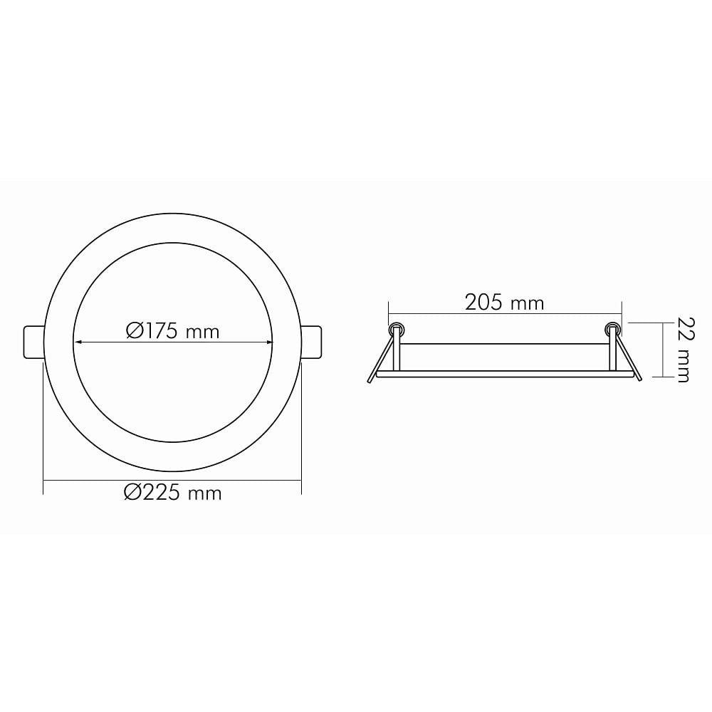 The luminaire is dimmable, with the dimming type depending on the driver used. The LED driver with a constant current of 350 mA is required separately, as is a dimmer, which is not included in the delivery. Installation is straightforward via a plug system with open cable ends, while the included spring clips ensure secure mounting. The cut-out diameter is 20.5 cm, facilitating integration into existing ceiling openings.