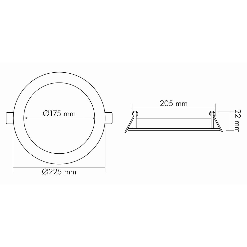 The recessed light features a slim design with an installation depth of only 2.5 cm and a diameter of 22.5 cm, allowing it to blend unobtrusively into various ceilings. The visible part measures 22.5 cm in diameter with a height of just 1.2 cm. Installation is done into an opening with a diameter of 20.5 cm and comes with practical clip springs that enable simple and secure mounting. The housing is made of painted aluminum and the diffuser is made of polymethyl methacrylate (PMMA), ensuring a stable construction and even light distribution with a beam angle of 120 degrees.
