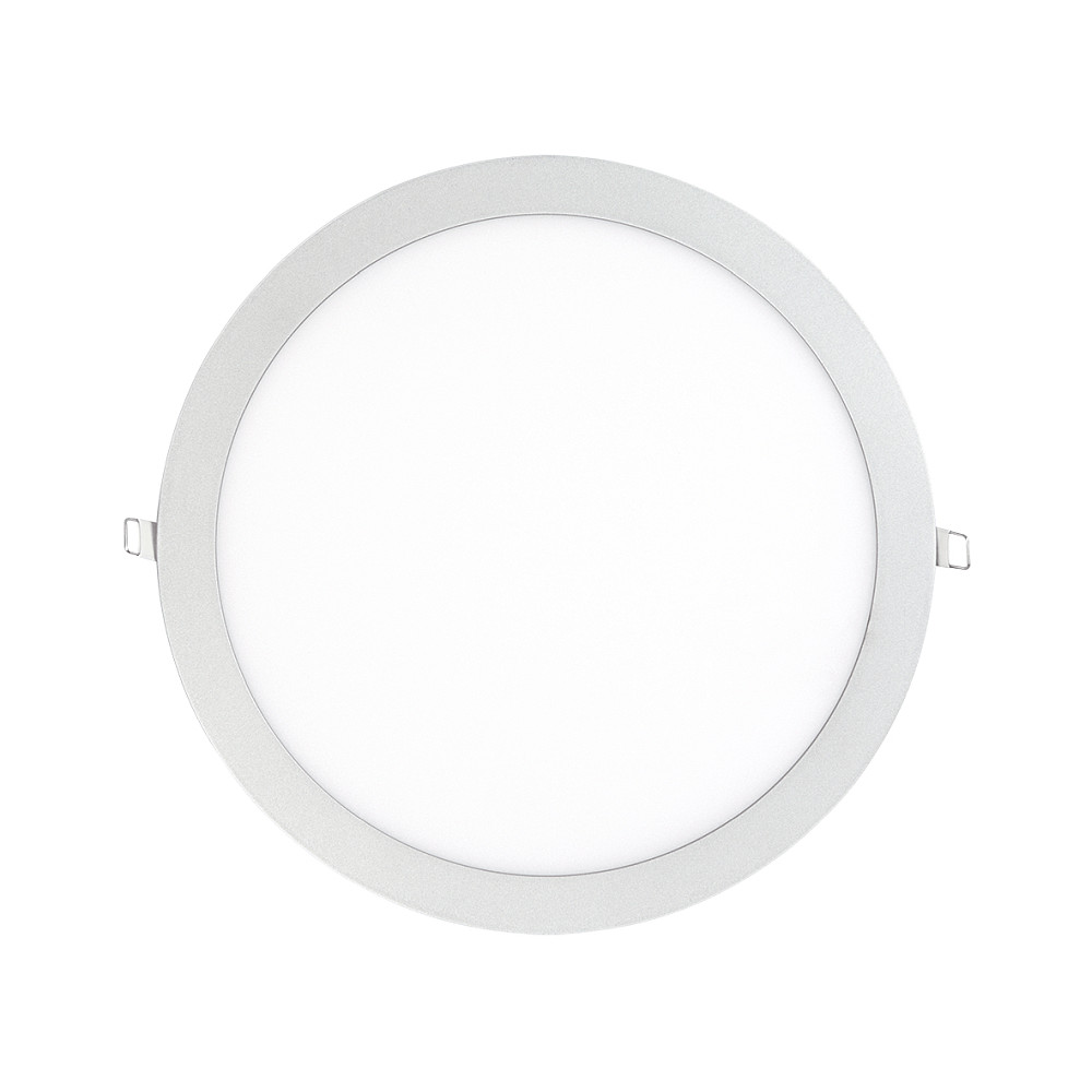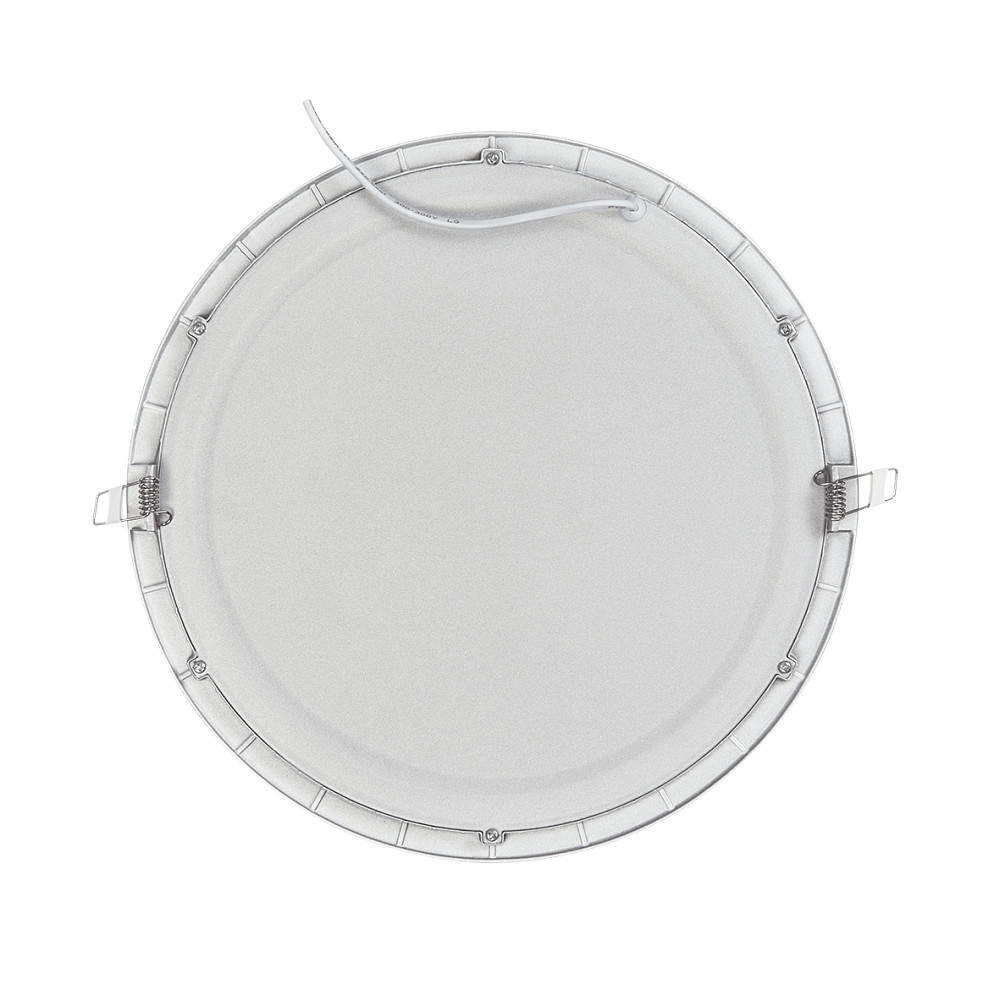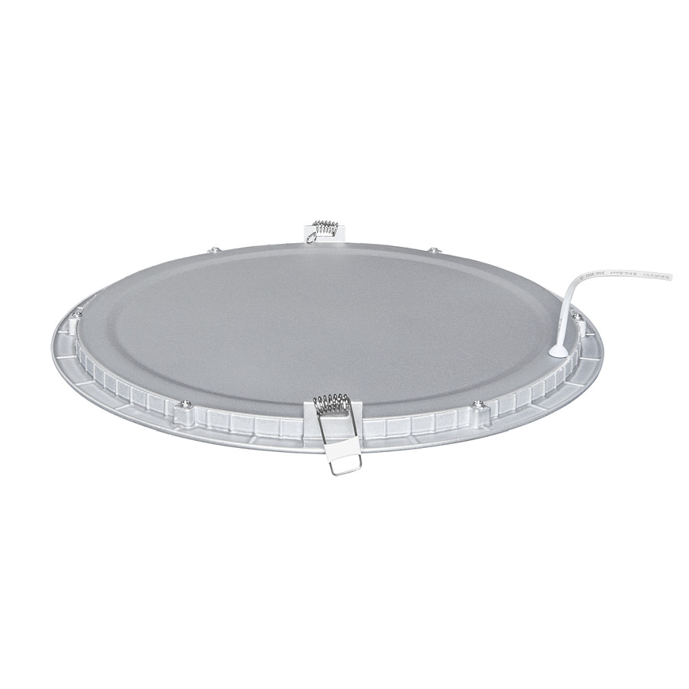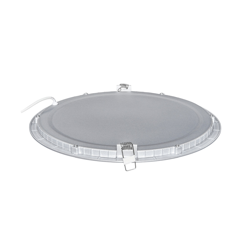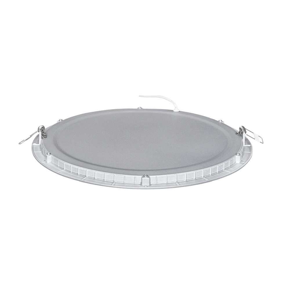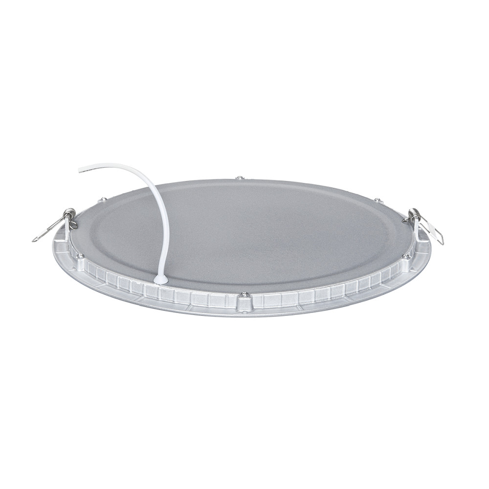 Installation of the LED recessed panel is simple and secure using a mounting opening with a diameter of 28 cm. All necessary accessories are included in the scope of delivery, including a 45 cm connection cable, socket, spring clips, and plug. The panel is designed for operation with a constant current driver of 350 mA, which is available separately. The luminaire is dimmable, with the type of dimming depending on the driver used. Integration into digital building automation systems is possible via DALI control, allowing for flexible light management.