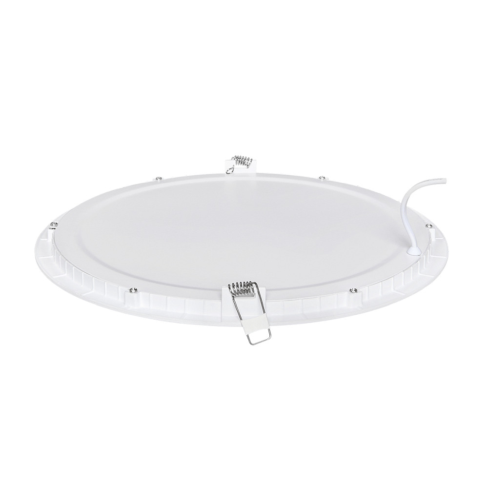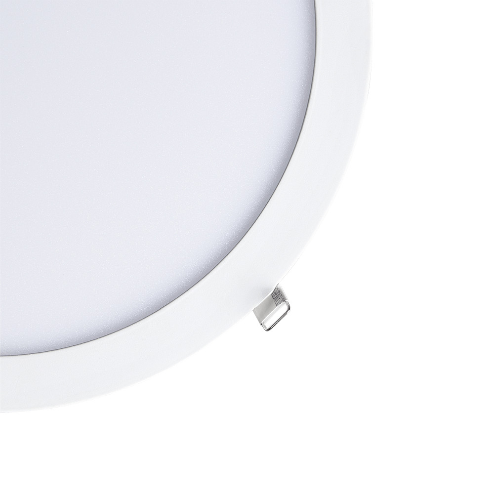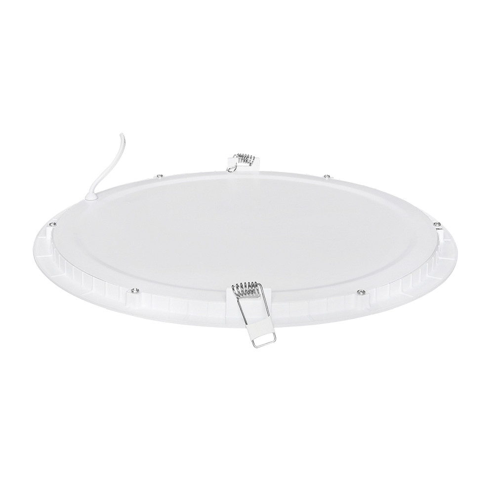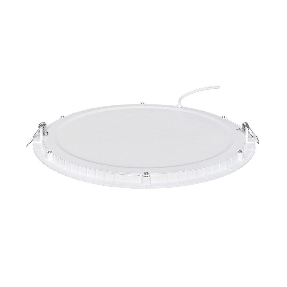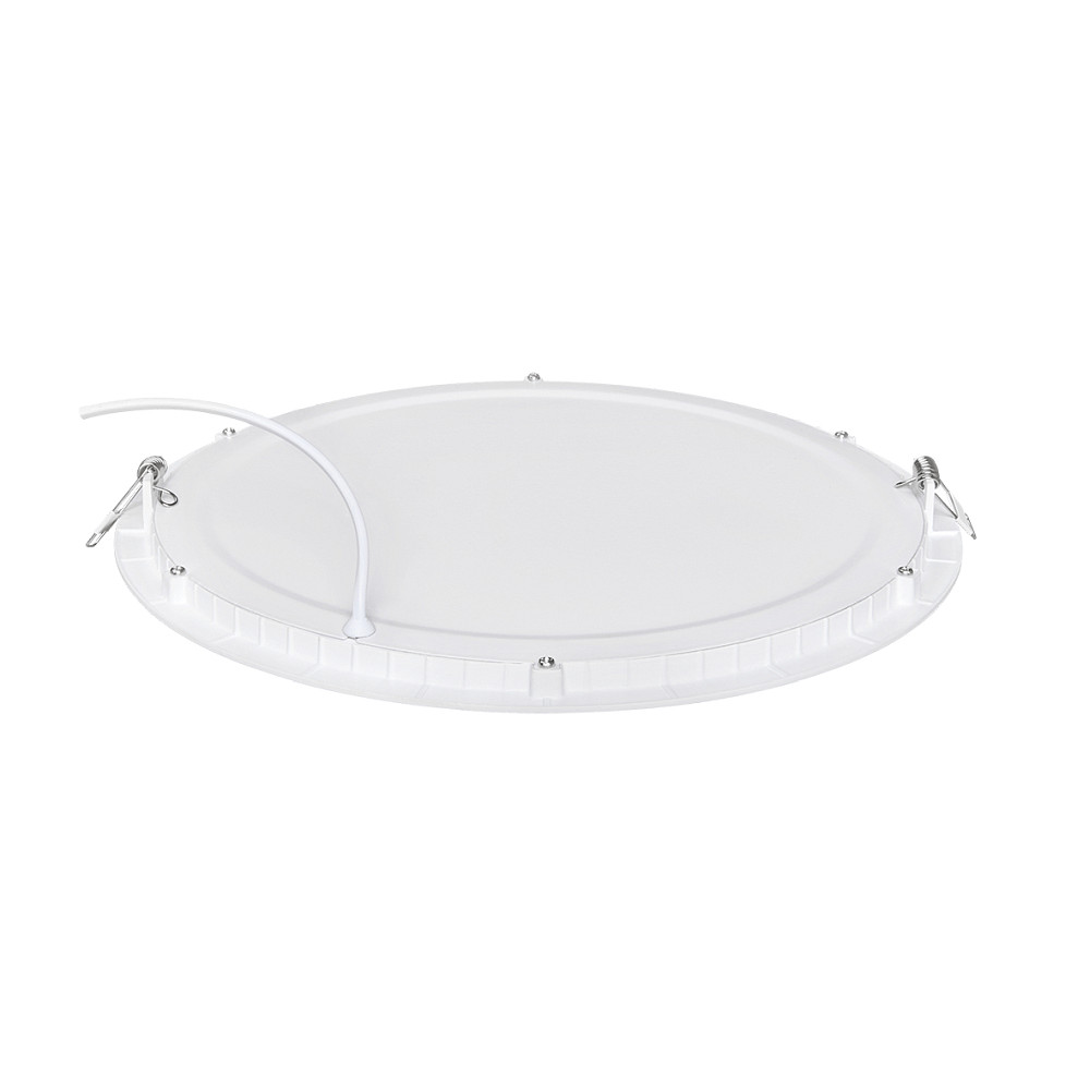The LED panel is specially designed for recessed installation in ceilings and requires an installation opening with a diameter of 28 cm. Installation is straightforward using the supplied spring clips. The symmetrical and uniformly diffuse light distribution provides direct illumination and is especially suitable for work areas that require even lighting. Additionally, the luminaire is also suitable for wall installation, offering extra flexibility in planning.