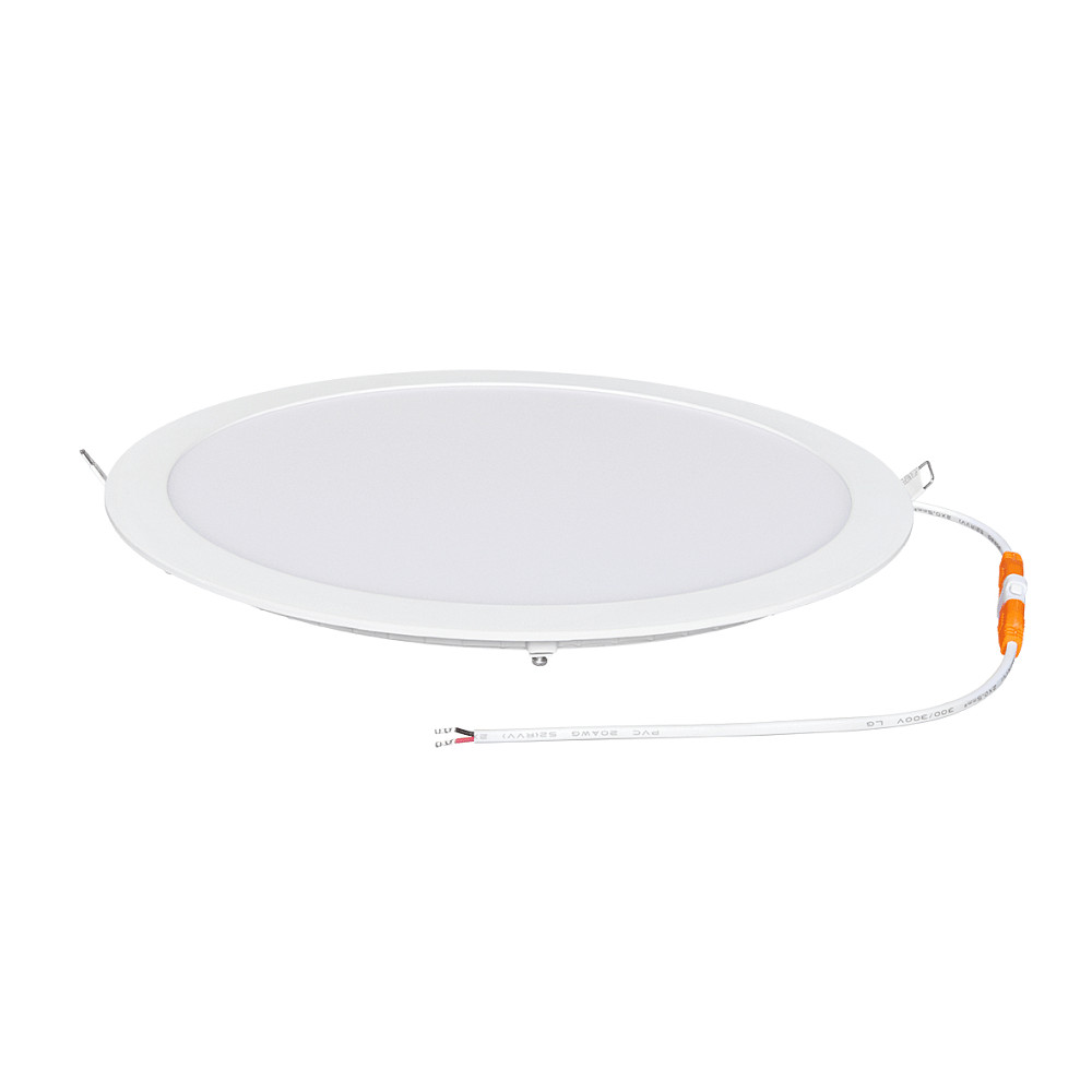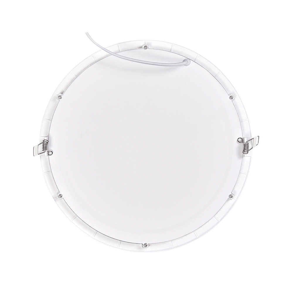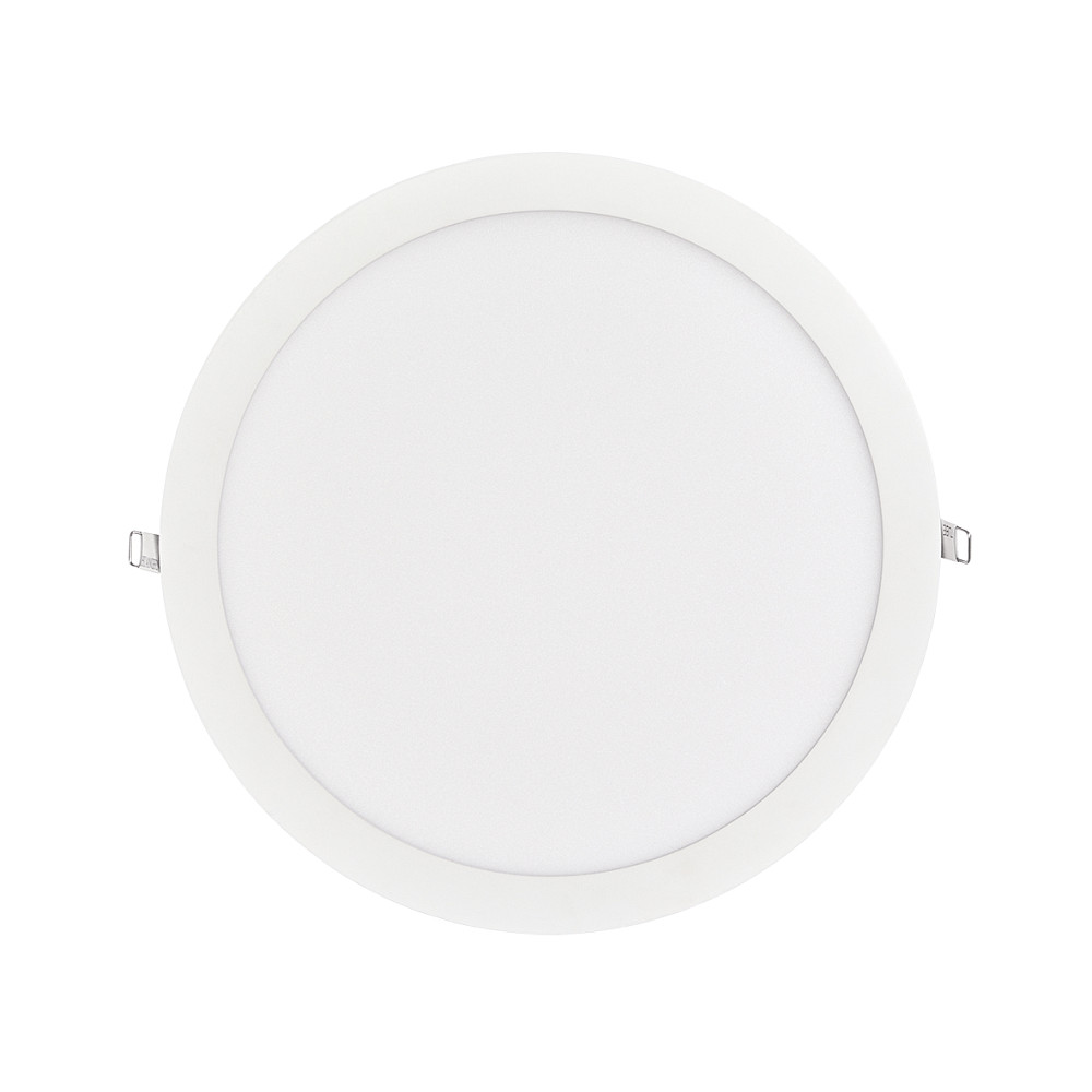 The LED recessed panel is supplied with connection cable, socket, spring clips, and plug, making installation uncomplicated and quick. The operating voltage of 28 volts and the safe low-voltage operation (SELV) increase safety during use. A constant current operation at 350mA is required, with the power supply (LED driver) not included. The fixture is dimmable, with the dimming type depending on the driver used. For modern applications, a DALI-controllable power supply can be used to integrate the panel into digital building automation systems.