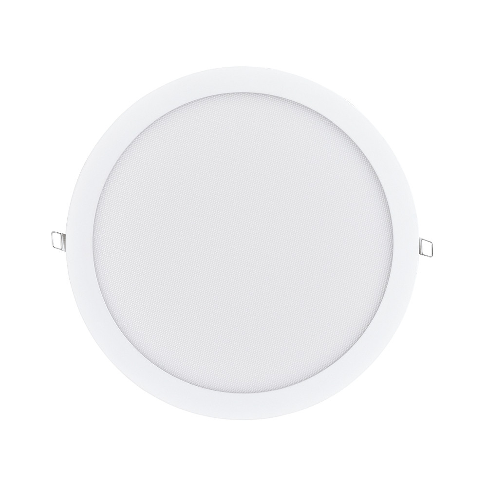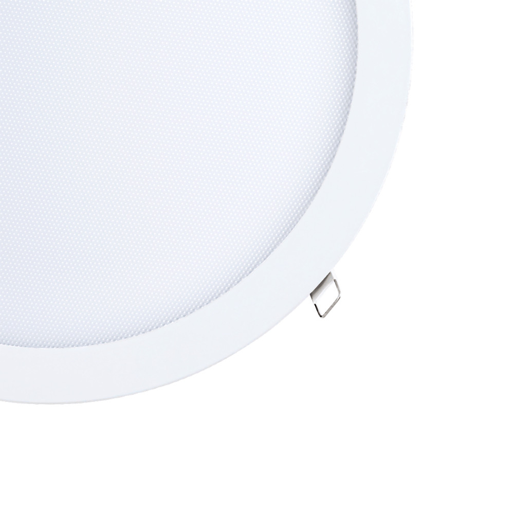 The LED panel is delivered including connection cable, socket, spring clips, light color switch, and plug, which facilitates installation. The installation depth is only 2.5 cm, and the cut-out diameter is 28 cm. The luminaire is dimmable, with the dimming method depending on the used driver. With a DALI-compatible driver, the panel can also be integrated into intelligent building automation systems.