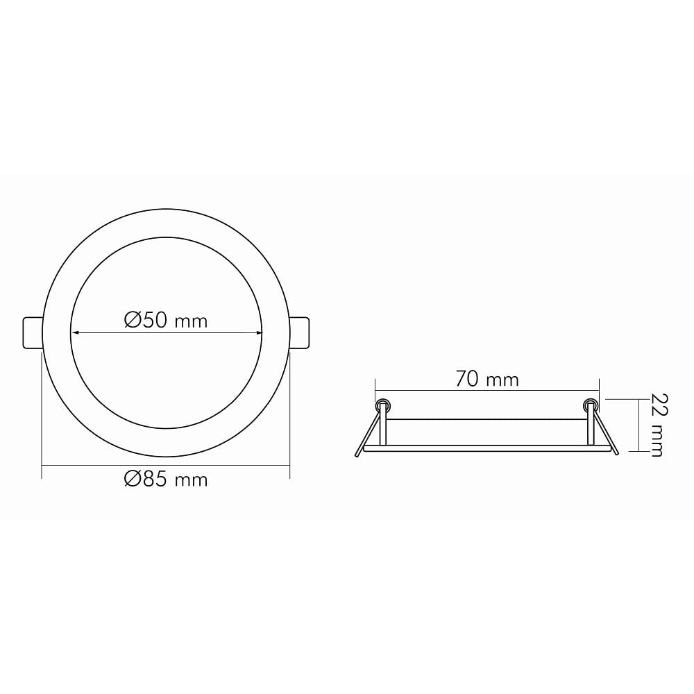 The LED recessed panel is dimmable, with the type of dimming depending on the respective driver used. Operation is carried out with a constant current of 350 mA, and a suitable LED driver is required separately. Installation is simple and quick thanks to the plug-in system with open cable ends. The supplied spring clips facilitate installation into ceiling openings with a diameter of 7.2 cm. The IP44 protection rating provides protection against splashing water and contact.