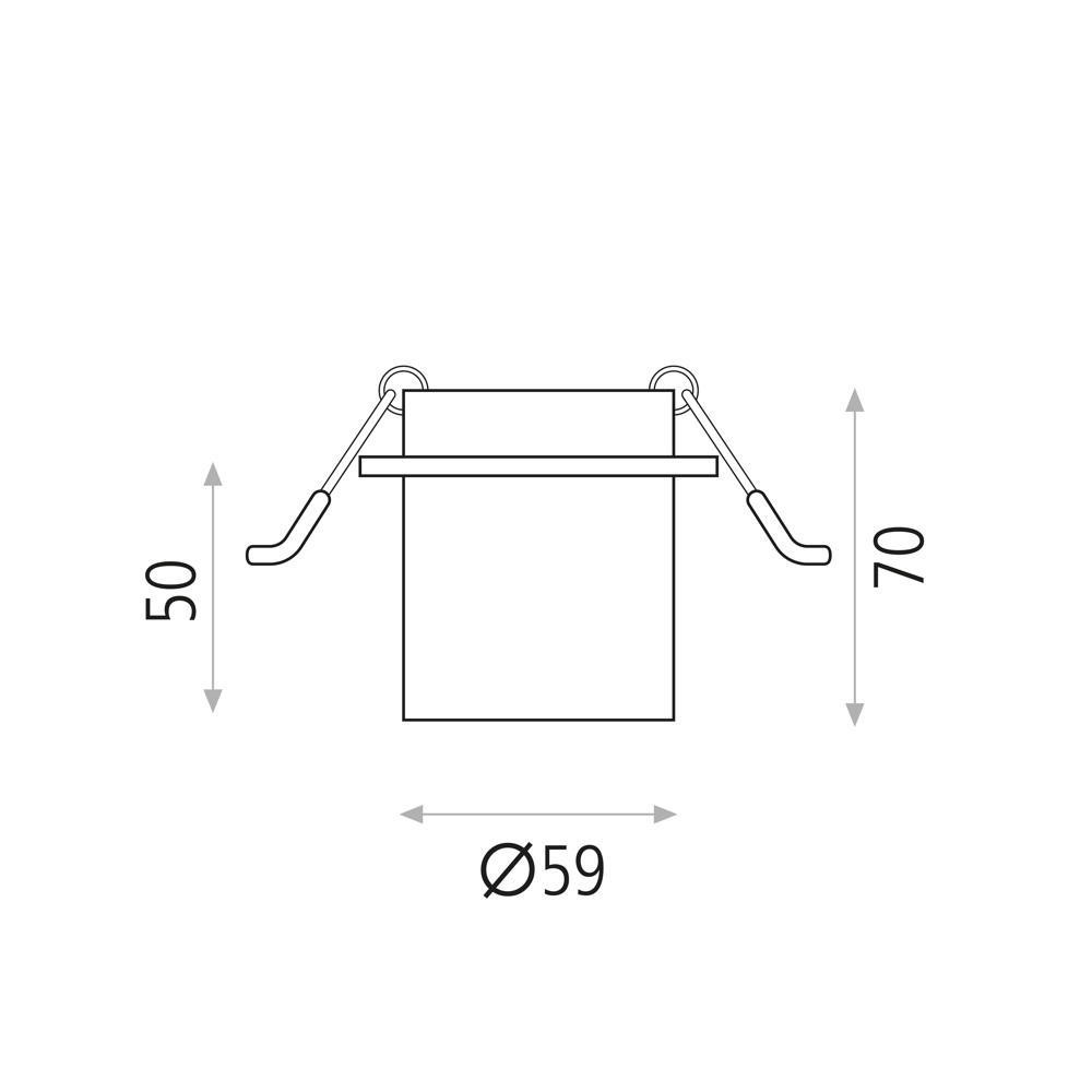 Installation is done by recessing into the ceiling. The visible part of the downlight has a diameter of 5.6 cm and a height of 5 cm. The bulb length is 5.8 cm and the installation type is recessed installation.
