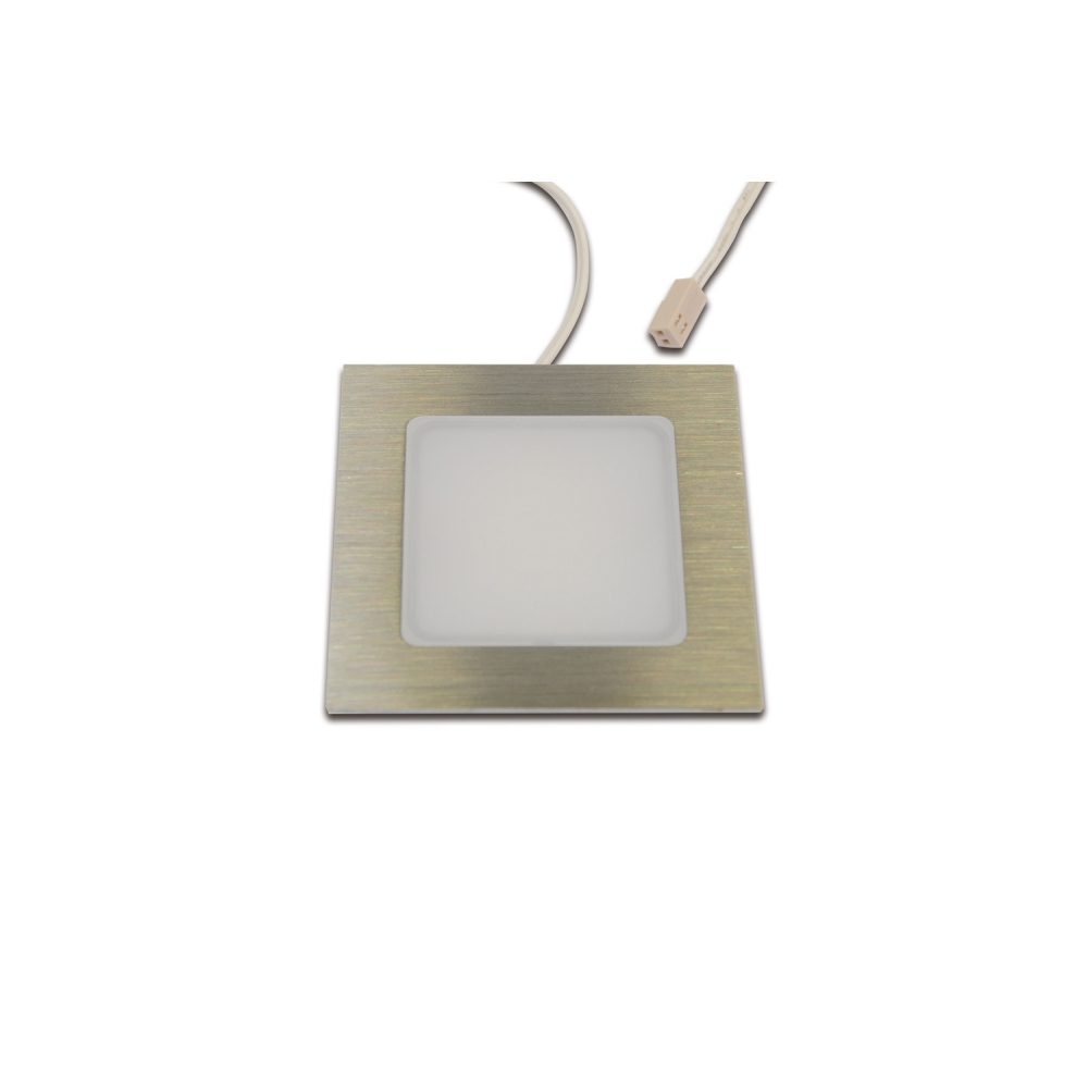 Thanks to its square design and diffuse light distribution, the LED recessed light is suitable for installation in furniture as well as ceilings. With dimensions of 7.5 x 7.5 x 1.4 cm, it fits easily into standard drill holes with a diameter of 6.8 cm. The rigid appearance with diffuser lens ensures uniform light distribution.