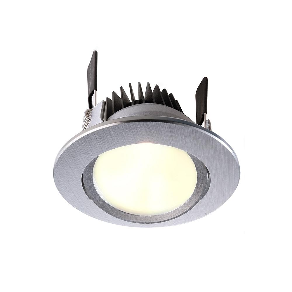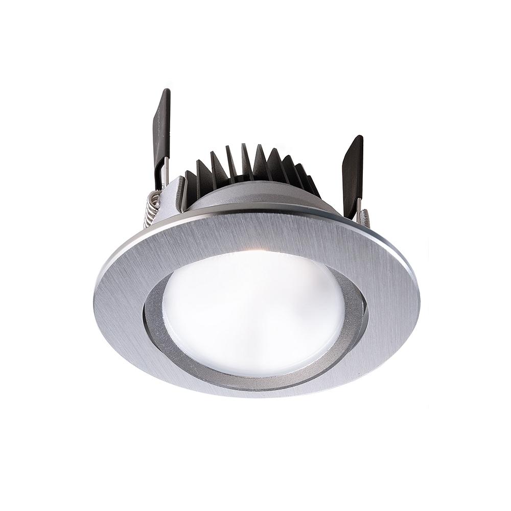 Recessed LED ceiling luminaire COB 68 cCT, 8W, 24V, 65°, 250cm-6500K, IP20, brushed silver