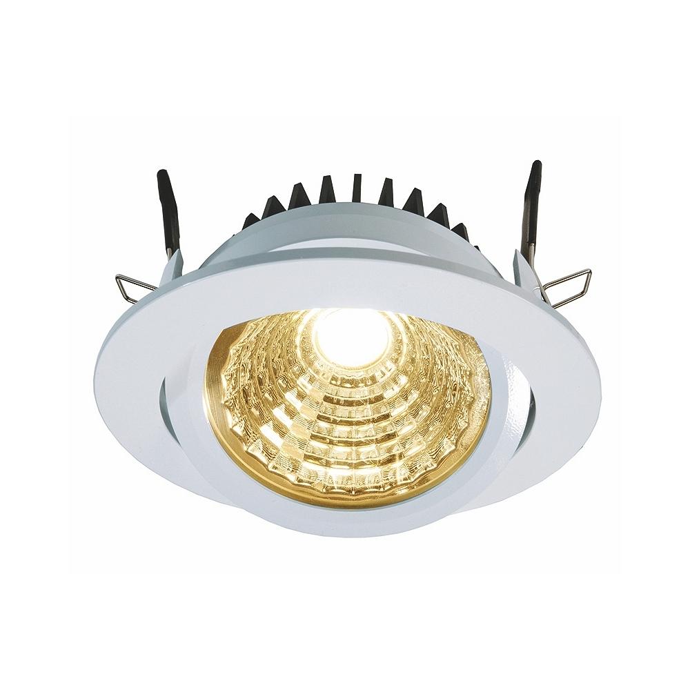 Recessed LED ceiling luminaire COB 95 round, current constant, 28-31V, 350 mA, 12W, 3000K, swivelling 45°, white
