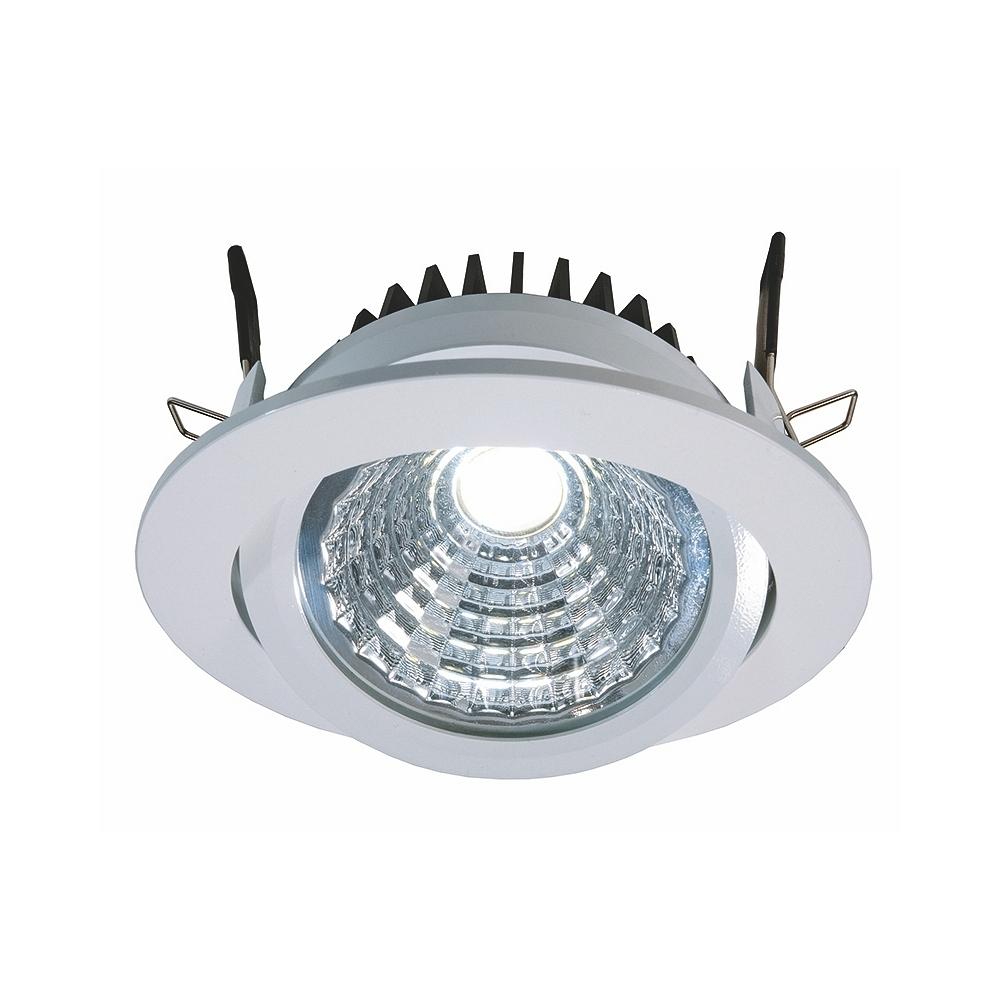 Recessed LED ceiling luminaire COB 95 round, current constant, 28-31V, 350 mA, 12W, 6000K, swivelling 45°, white