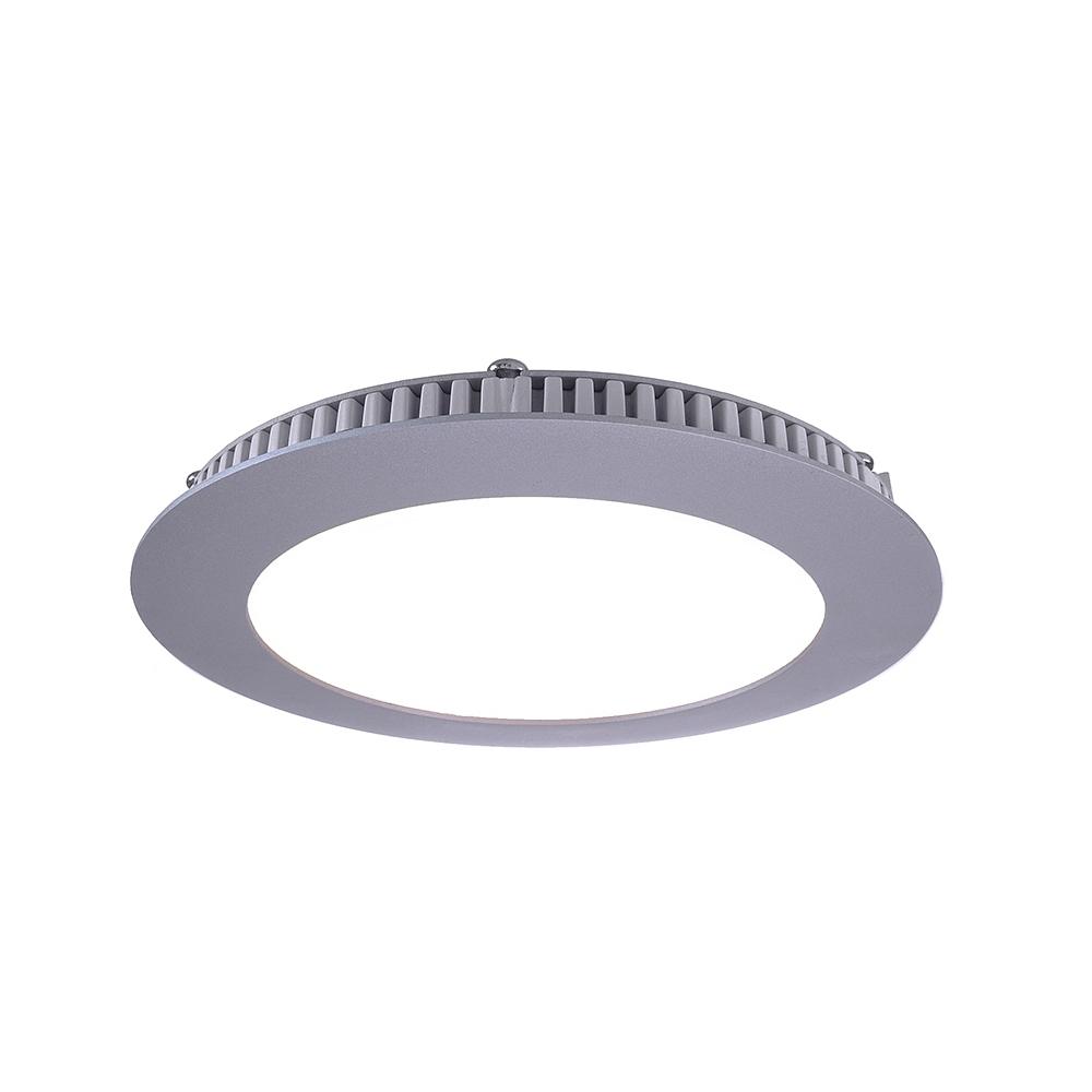 The LED Recessed Ceiling Light is made of die-cast aluminum and is silver in color. The color rendering index is over 80Ra, ensuring natural color reproduction. The light has a reflector/lens with symmetrical orientation.