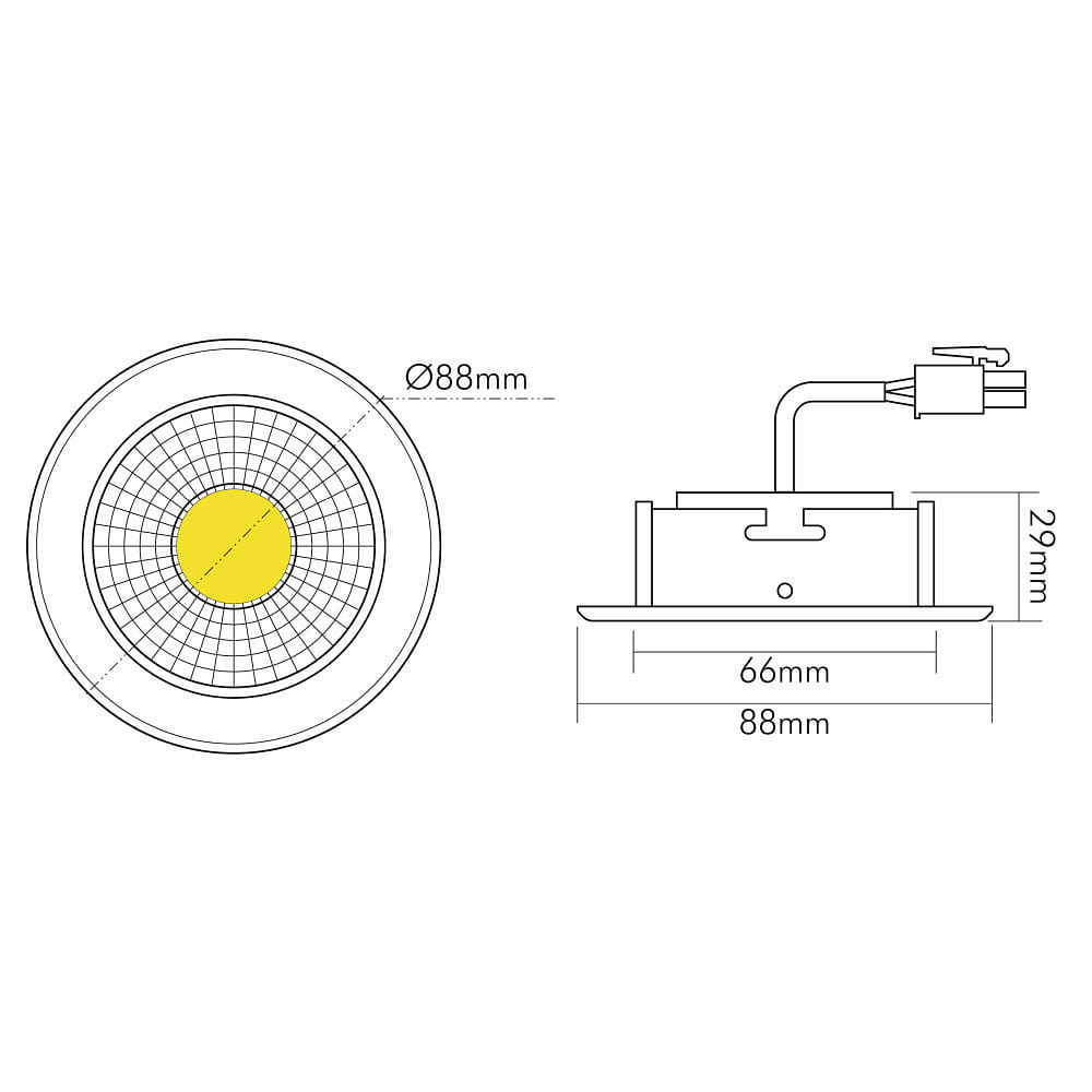 Thanks to the recessed installation and the connection box with through wiring (L, N, PE) / plug-in terminals, the installation of the downlight is uncomplicated. It is ideal for use in spot and general lighting, and can be installed in all common concrete installation housings.