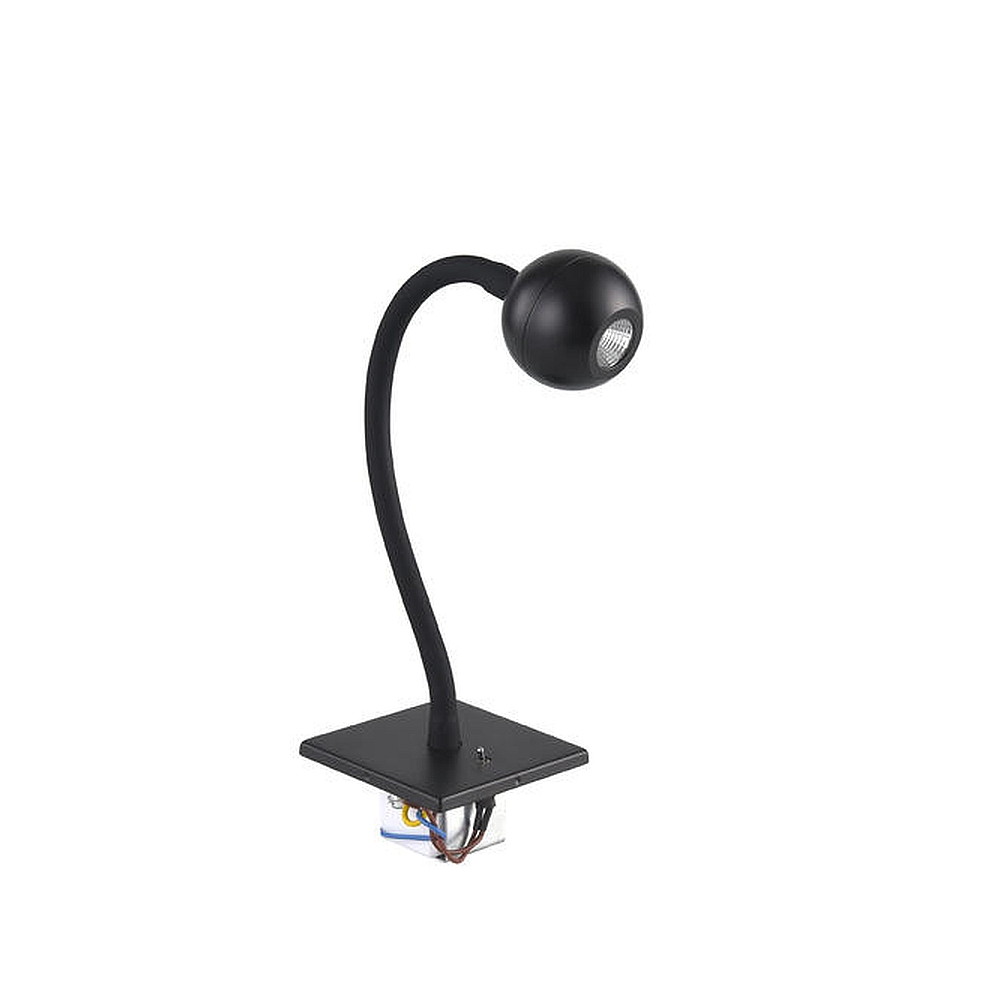 Recessed LED reading luminaire ARCUS, IP20, square, flex arm + switch, for cavity wall boxes, 4.5W 360lm 43°