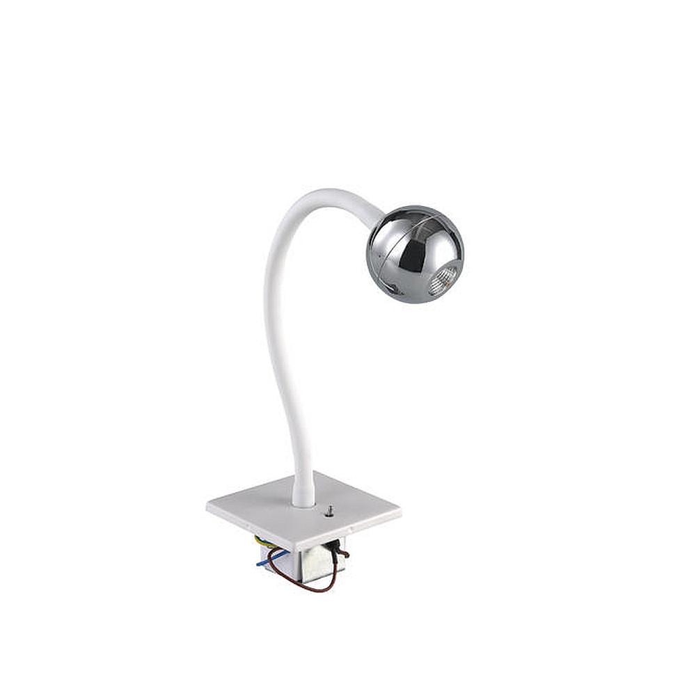 Recessed LED reading luminaire ARCUS, IP20, square, flex arm + switch, for cavity wall boxes, 4.5W 360lm 43°, white / chrome