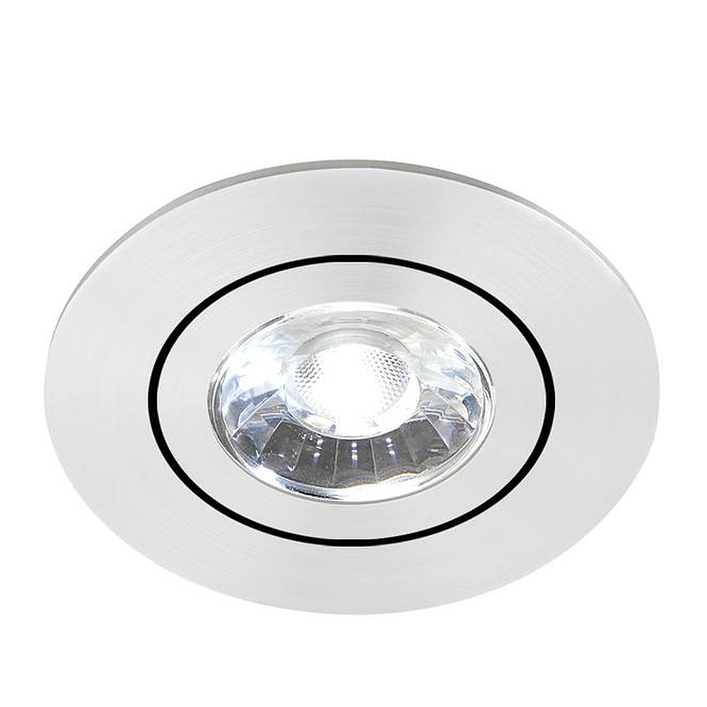 Recessed LED spot DISC with lens optics, IP44, Ø 8.2cm, Plug&Play 350mA, swivelling 30°, 6W 3000K 670lm 38°, matt alu