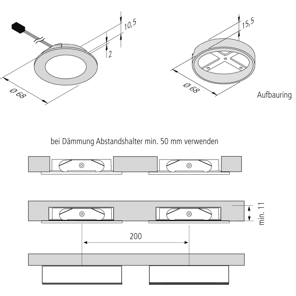 Recessed LED spot Dynamic FR 55-LED with area light, 3W 2700-5000K, inox look