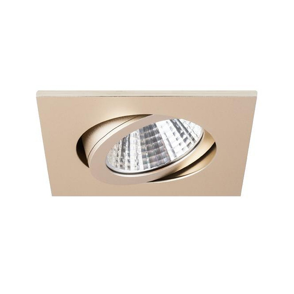 Recessed LED spot, IP20, square, 230V AC, 6W 3000K 640lm 38°, swivelling 20°, matt champaign