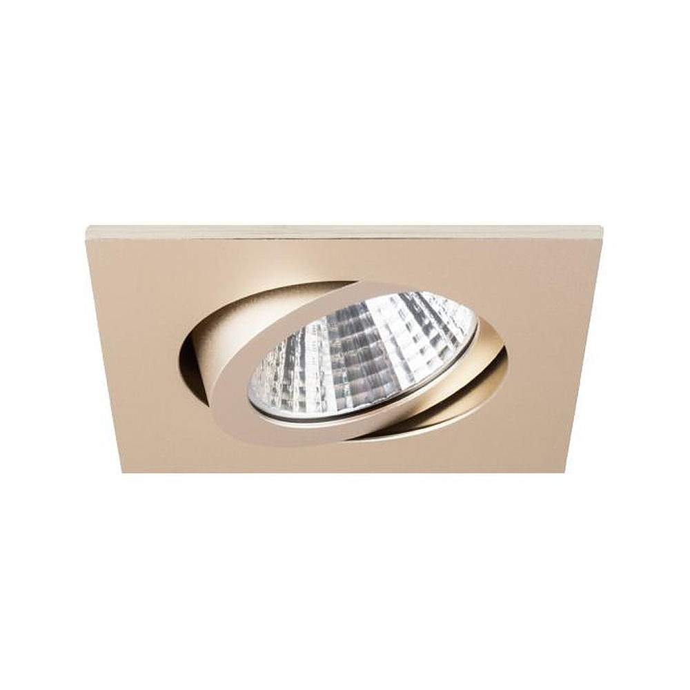 Recessed LED spot, IP20, square, 8.2 x 8.2cm, Plug&Play 350mA, 7W 2700K 740lm 38°, swivelling 30°, matt champaign