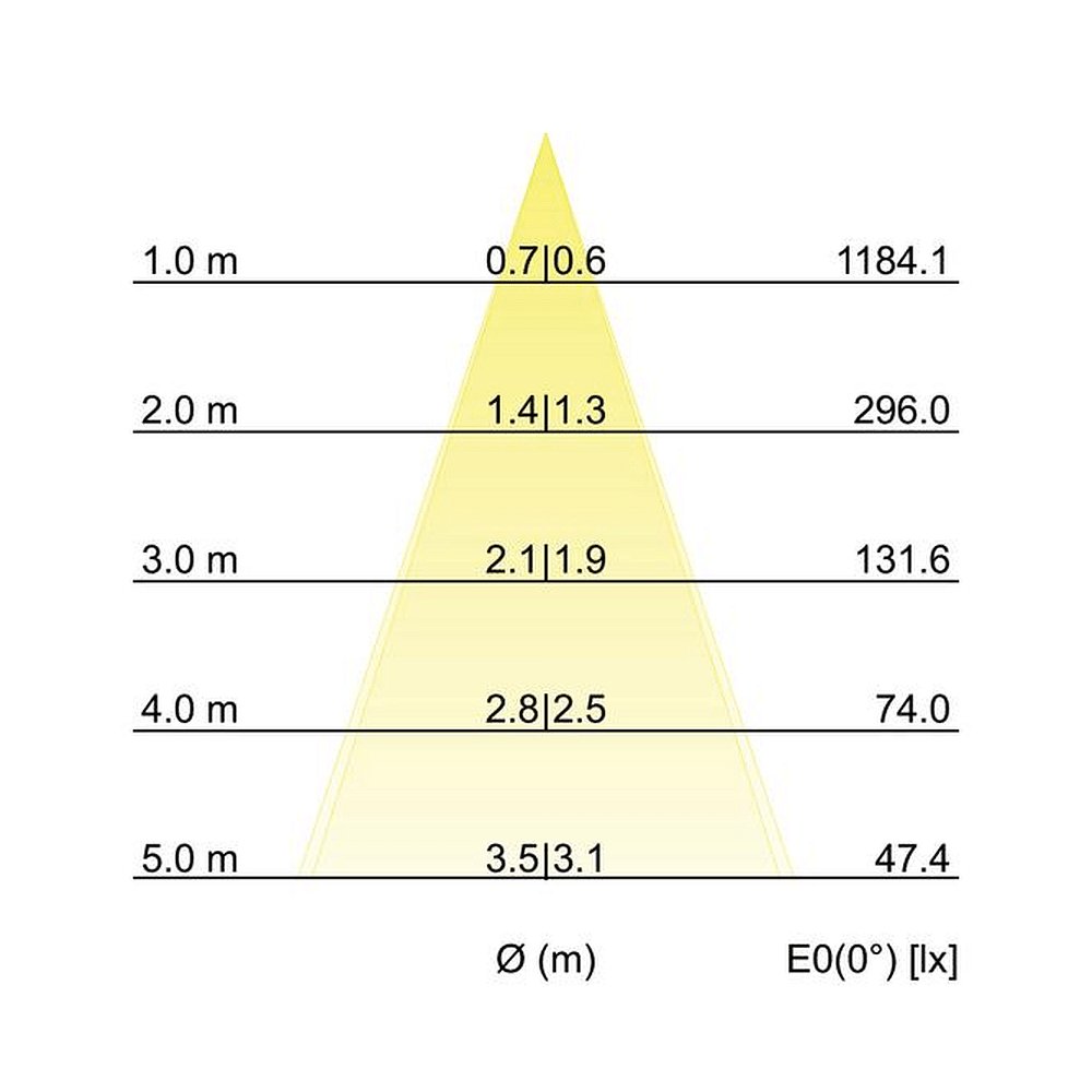 The square LED recessed spotlights can be flexibly used and individually aligned. With a beam angle of 38°, they provide targeted lighting.
