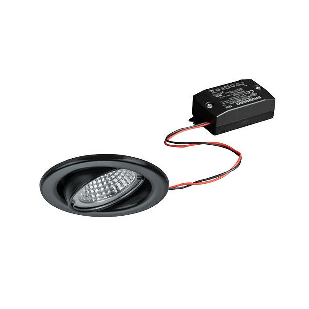 Recessed LED spot set incl. converter, IP20, round, 230V AC, 6W 3000K 640lm 38°, swivelling 25°, black