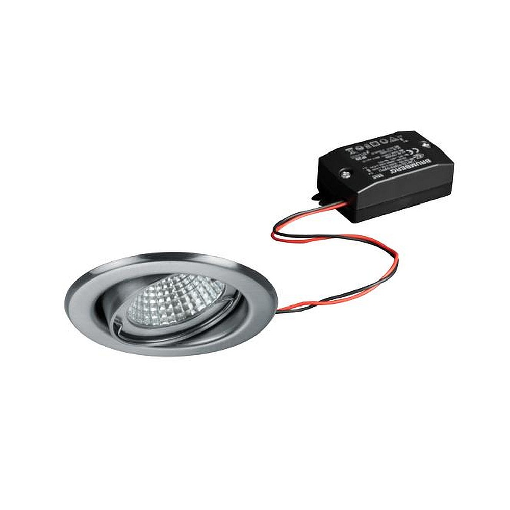 Recessed LED spot set incl. converter, IP20, round, 230V AC, 6W 3000K 640lm 38°, swivelling 25°, matt chrome