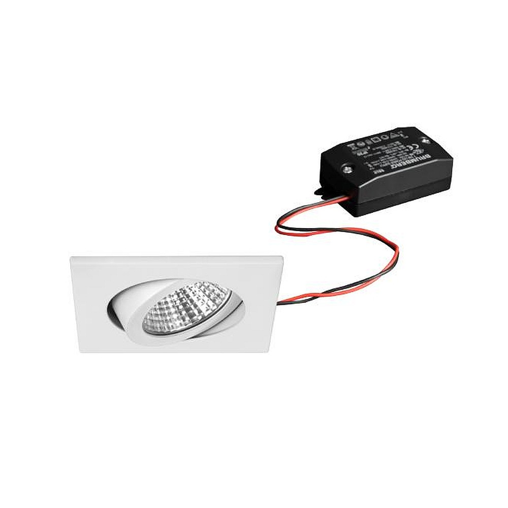 Recessed LED spot set incl. converter, IP20, square, 230V, 7W 3000K 740lm 38°, swivelling 30°, white
