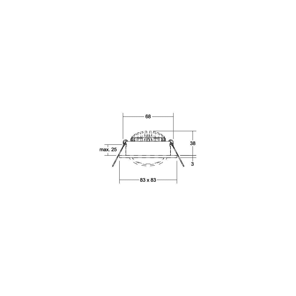 The LED recessed spotlight is square-shaped and measures 8.3 x 8.3 cm. It has a swivel range of 15° to optimize light direction. Installation is done by recessing it into the ceiling, and with the included accessories like connection box and clip springs, installation is simple and straightforward.