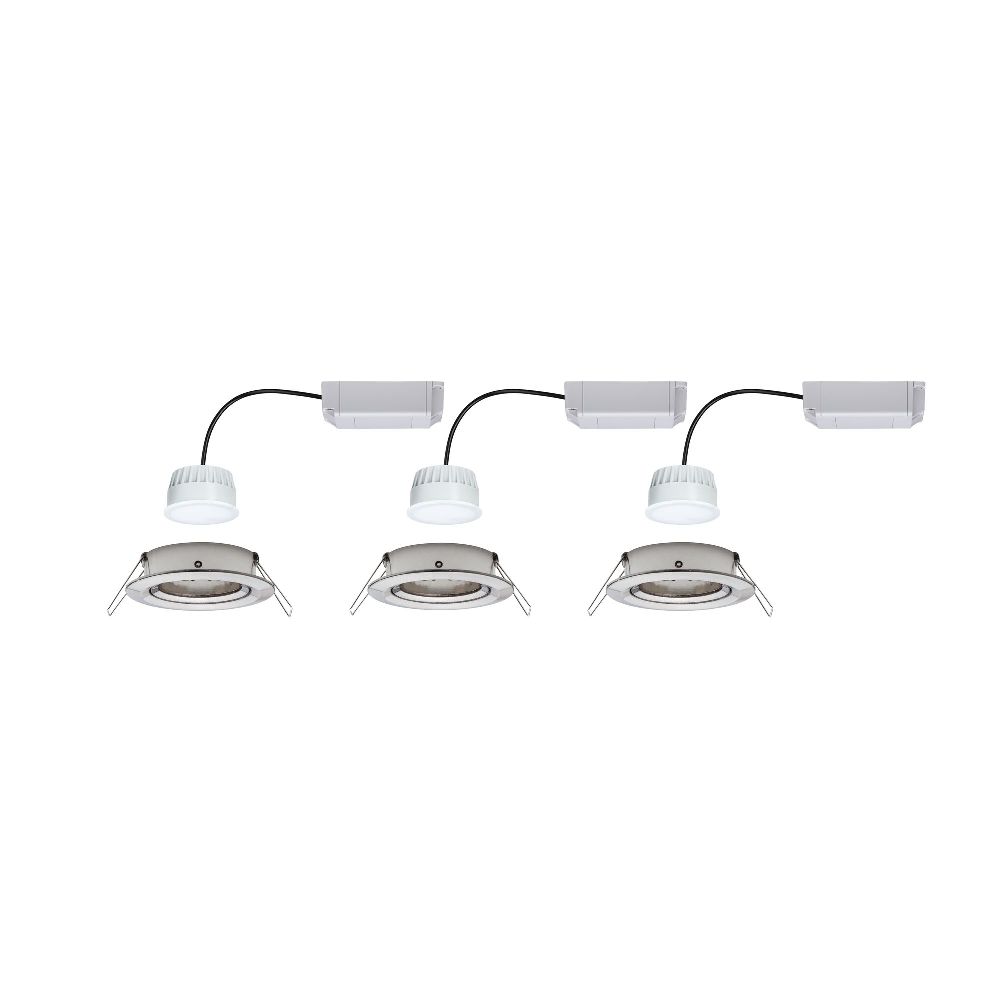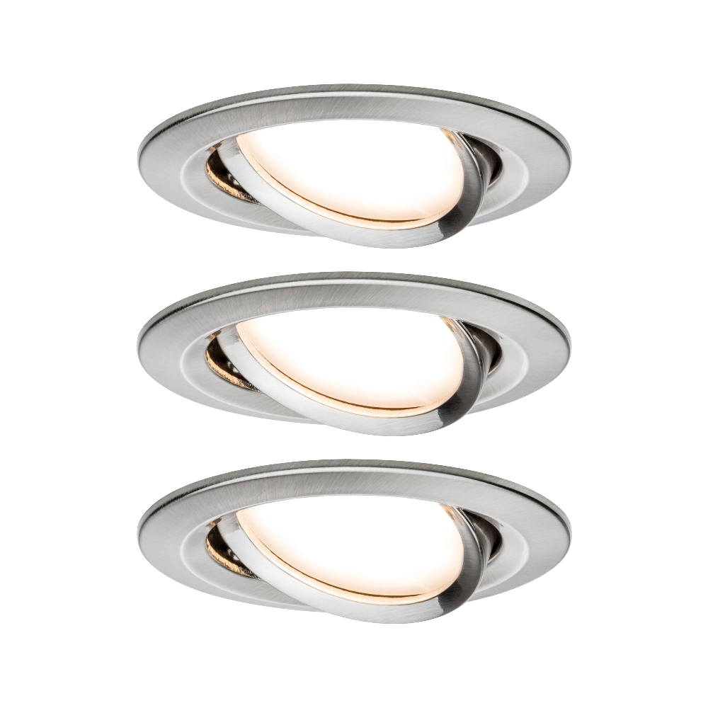 The 3-pack LED recessed light NOVA PLUS ZigBee COIN WW from Paulmann impresses not only with its modern and appealing brushed iron design, but also with its high energy efficiency. With a replacement for a conventional 40W incandescent lamp, these recessed lights provide good light and save energy at the same time.