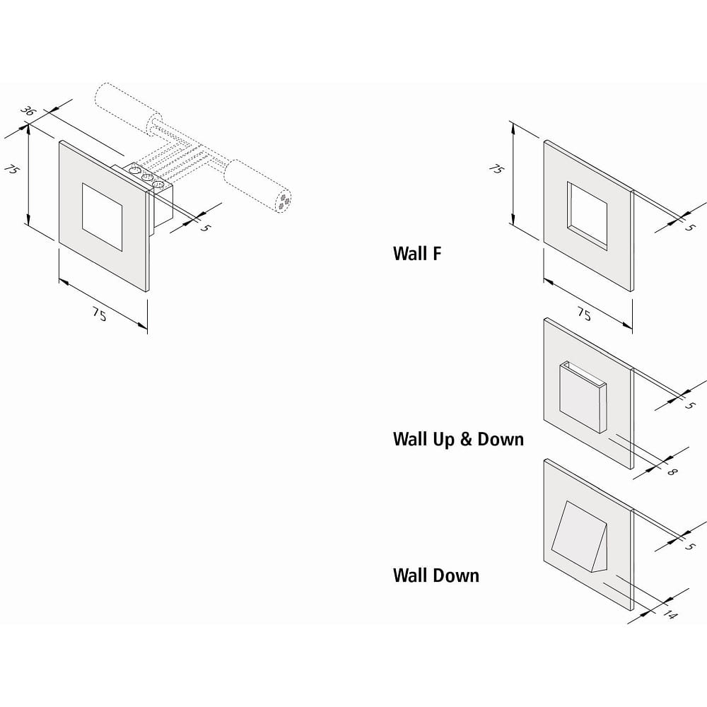 The LED recessed wall light WALL IF is a flat recessed light specially designed for stair lighting. With dimensions of 7.5 x 7.5 x 4.1 cm, it fits perfectly into standard flush-mounted boxes and cavity wall boxes with a diameter of 68mm. The version with lateral emission ensures direct and homogeneous light output through the opal white diffuser.