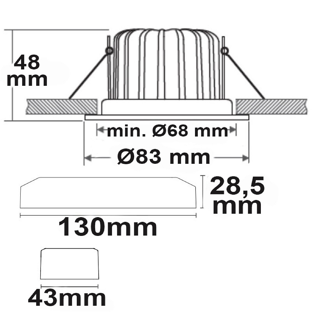 Recessed outdoor LED spot Sys-68, IP65, fixed optics, CRi >95, TRIAC dimmable, 10W 3000K 800lm 60°