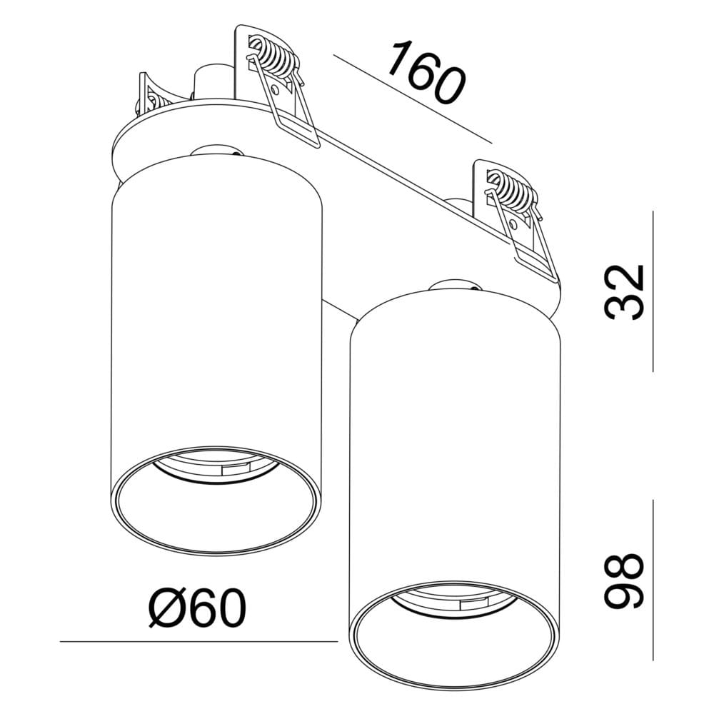 recessed spotlight CAN TILT ROUND DOUBLE 2 flames, round, cardanic swivelling GU10 IP20, black