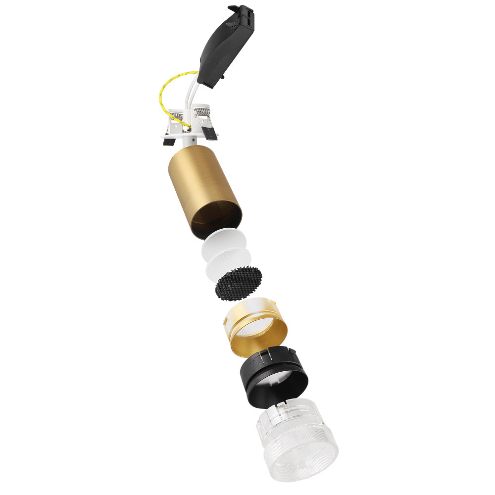 The scope of delivery includes a trim ring, spring clips, socket, and shade, enabling straightforward installation. Additionally, Deko-Light offers optional accessories such as decorative rings, honeycomb filters, lenses, and reflectors. These accessories allow for customized light design, for example, softer area lighting thanks to the softening lens or targeted light distribution with the spread lens. The honeycomb filter helps reduce glare, providing pleasant lighting conditions without disturbing reflections.