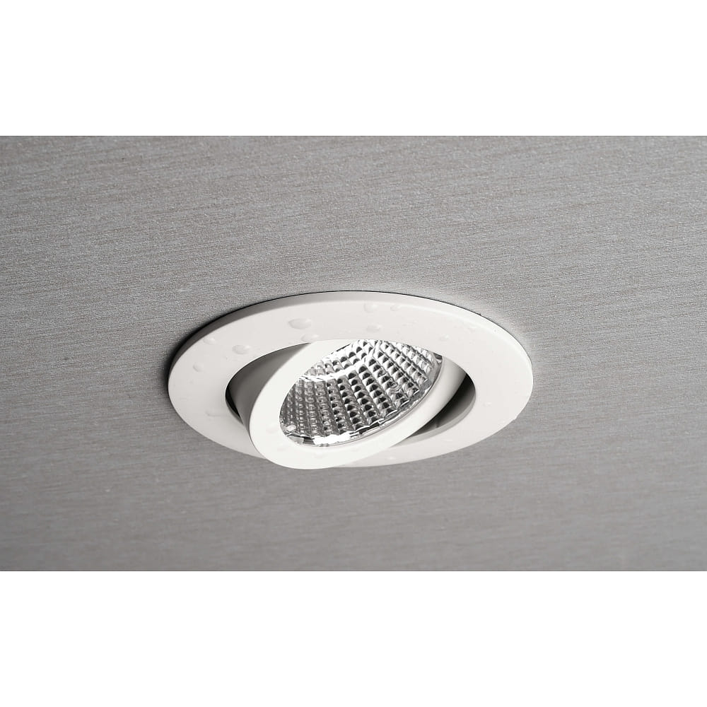 The DIONE recessed spotlight is dimmable and compatible with conventional leading-edge and trailing-edge dimmers, enabling individual adjustment of light intensity. Protection class II combined with the IP44 certification provides reliable protection against splashing water, ensuring safe use. The luminaire is also suitable for ambient temperatures from -20 to +40 °C, making it robust and versatile.