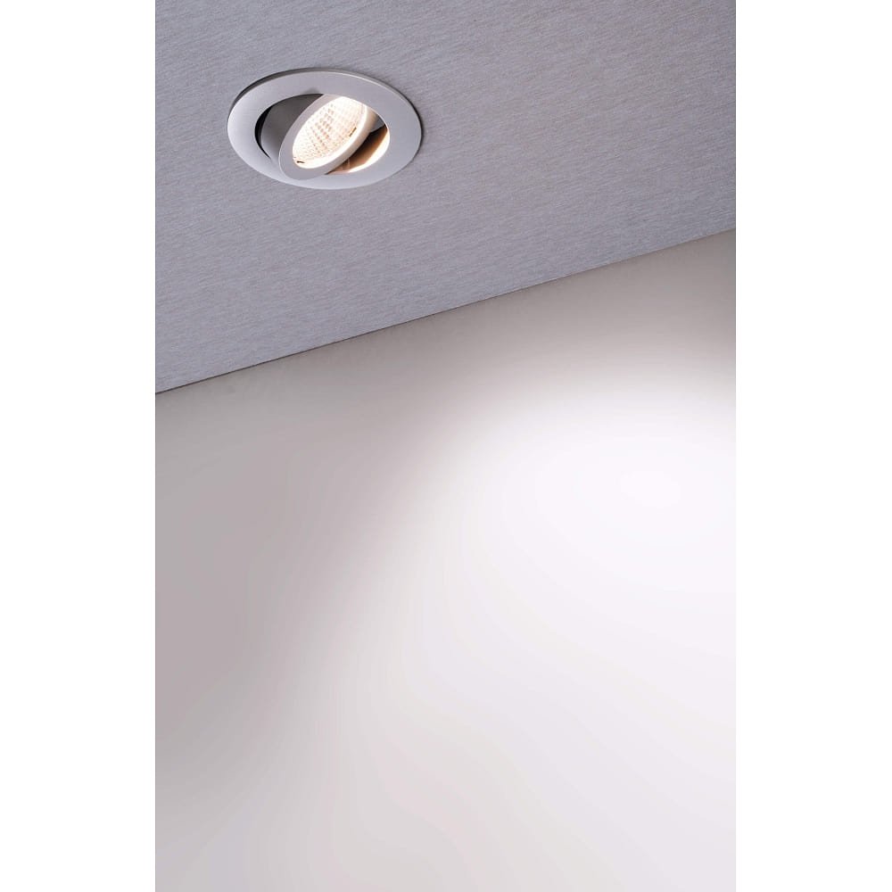 A special highlight of this recessed spotlight is the 30-degree swiveling LED module, which allows individual alignment of the light beam. The beam angle of 36 degrees provides a medium-wide light distribution that shines evenly and directly downward through a clear cover. This allows targeted lighting of specific areas, which is especially advantageous for accentuating objects or work surfaces.