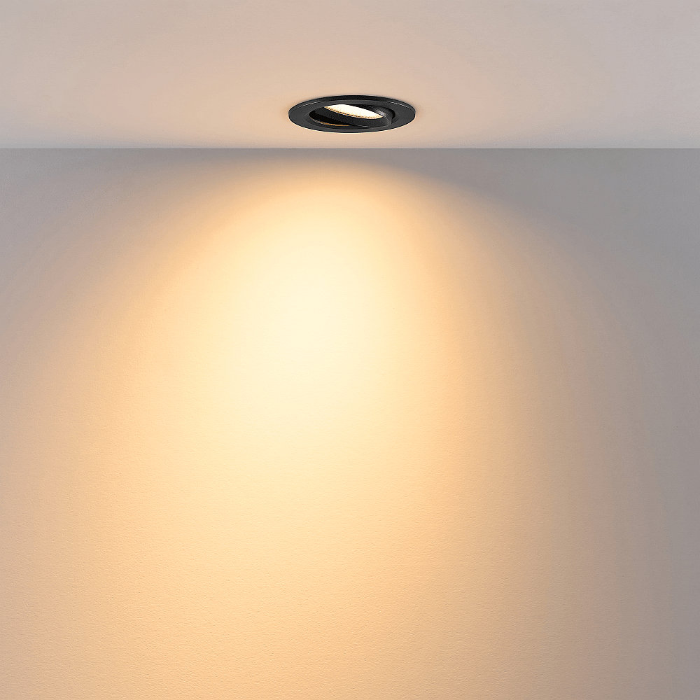 recessed spotlight SURTUR TILT 83 DTW swivelling, Dim-To-Warm IP20/IP44, black dimmable
