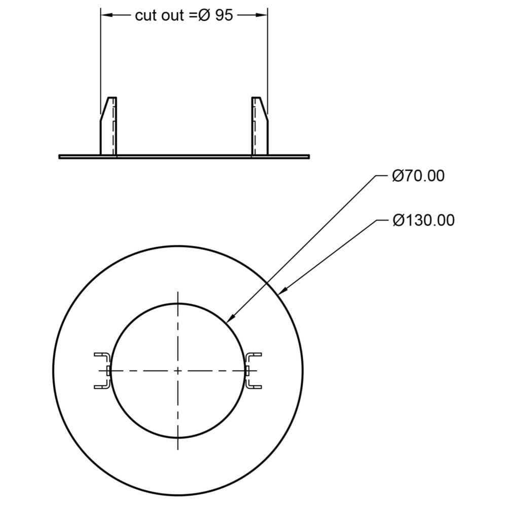 The reducing ring can be installed without tools thanks to the included spring clips. These provide a secure hold for the light in the reduced installation opening and make installation significantly easier. The spring clips are designed to flexibly adapt to different material thicknesses—from 0.3 cm up to a maximum of 3 cm—making them ideal for various ceiling thicknesses. This ensures a quick, uncomplicated, and reliable installation.