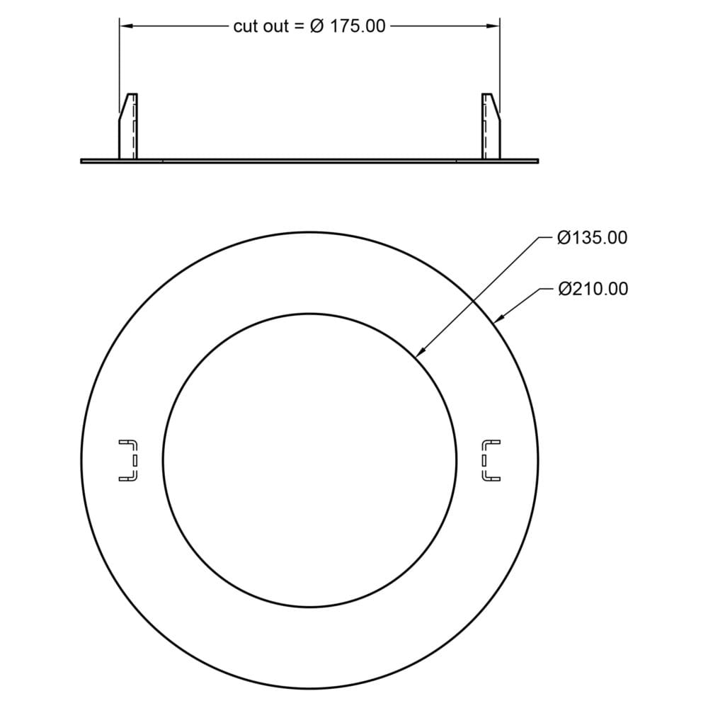 The installation of the reducer ring is extremely easy and tool-free thanks to the included clip springs. These ensure a secure hold for lights with a diameter of 13.5 cm and allow for quick installation without additional effort. The trim is designed for ceiling cutouts with a diameter of 17.5 cm and is suitable for material thicknesses from 0.3 to 3 cm.